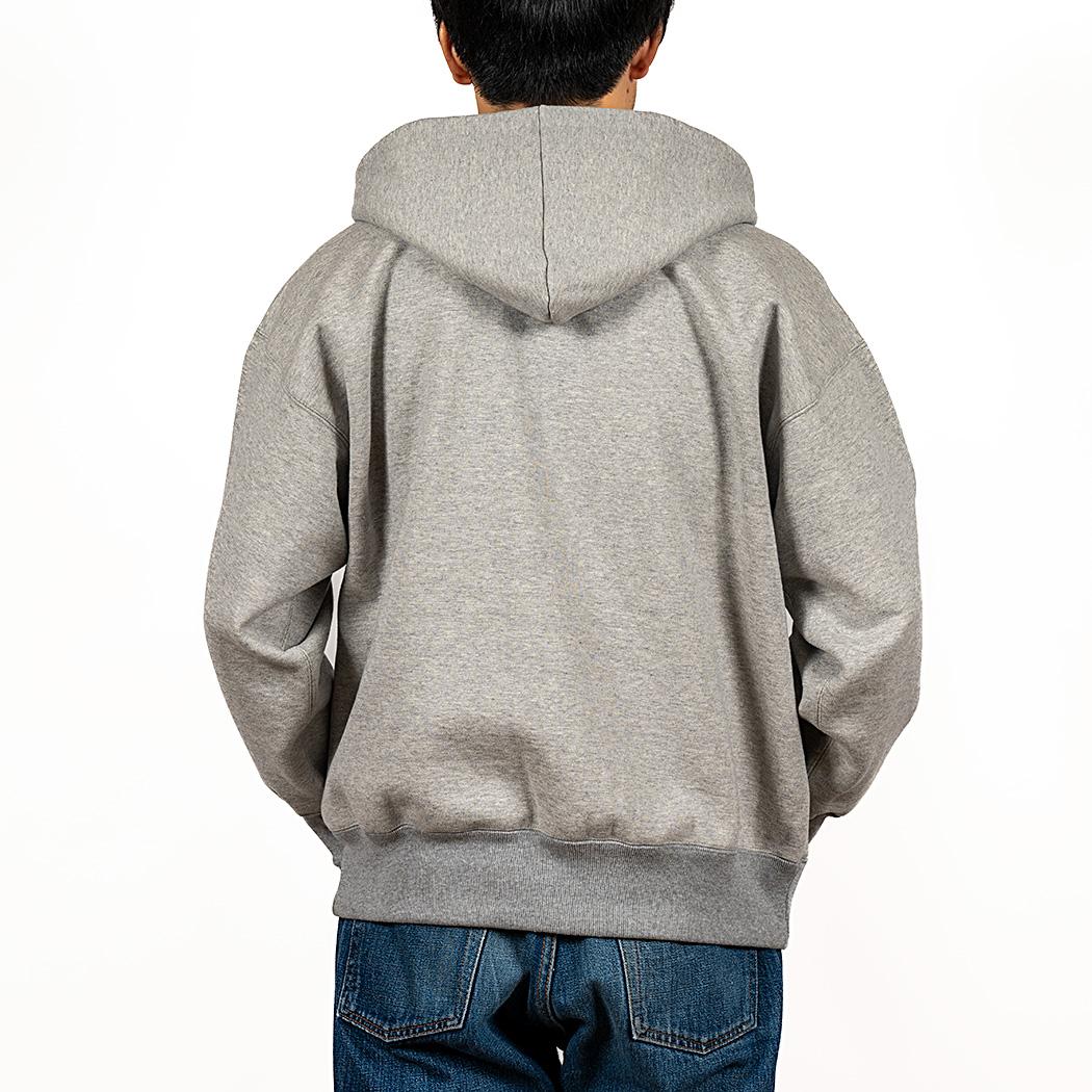 24年秋冬バージョンは変更点が1点。フードの裏を切り替えにしてボディの裏毛よりは薄いT シャツ生地に変更しました。
