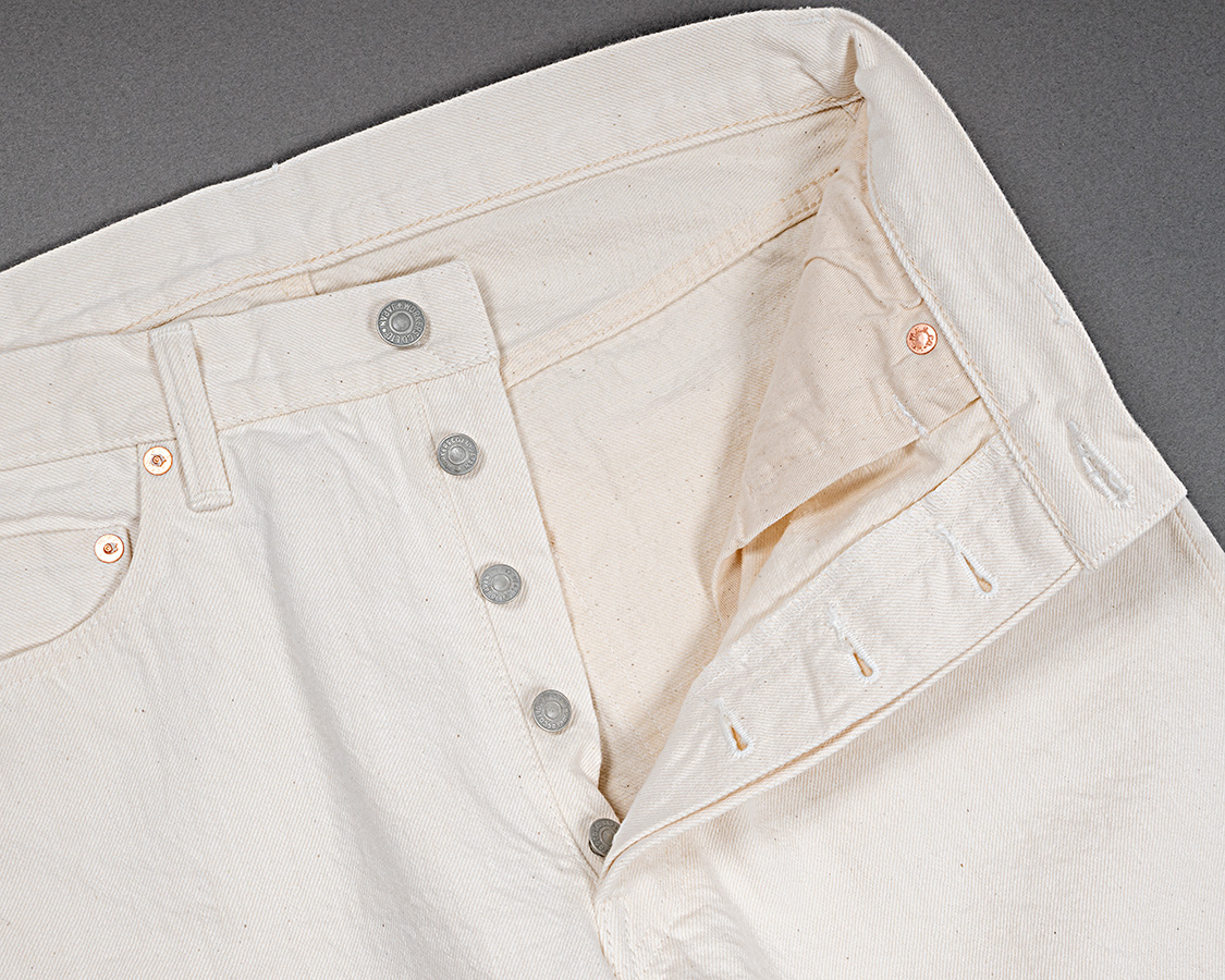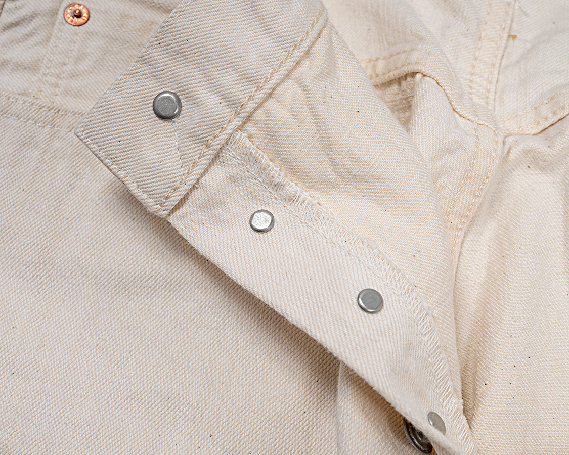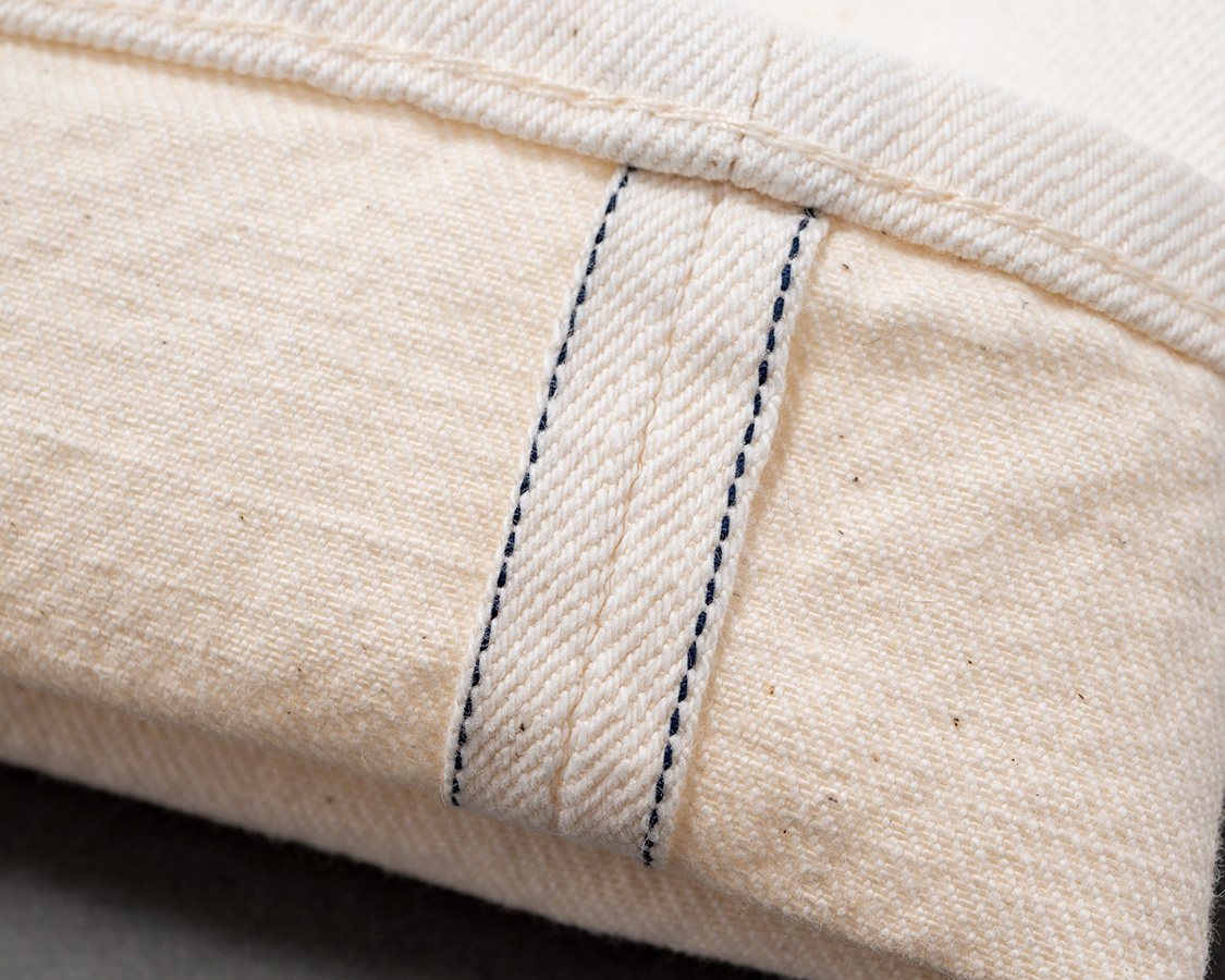 ホワイトは写真が撮りづらい!真っ白ではなく、タテは白、ヨコは生成りのホワイトデニム。