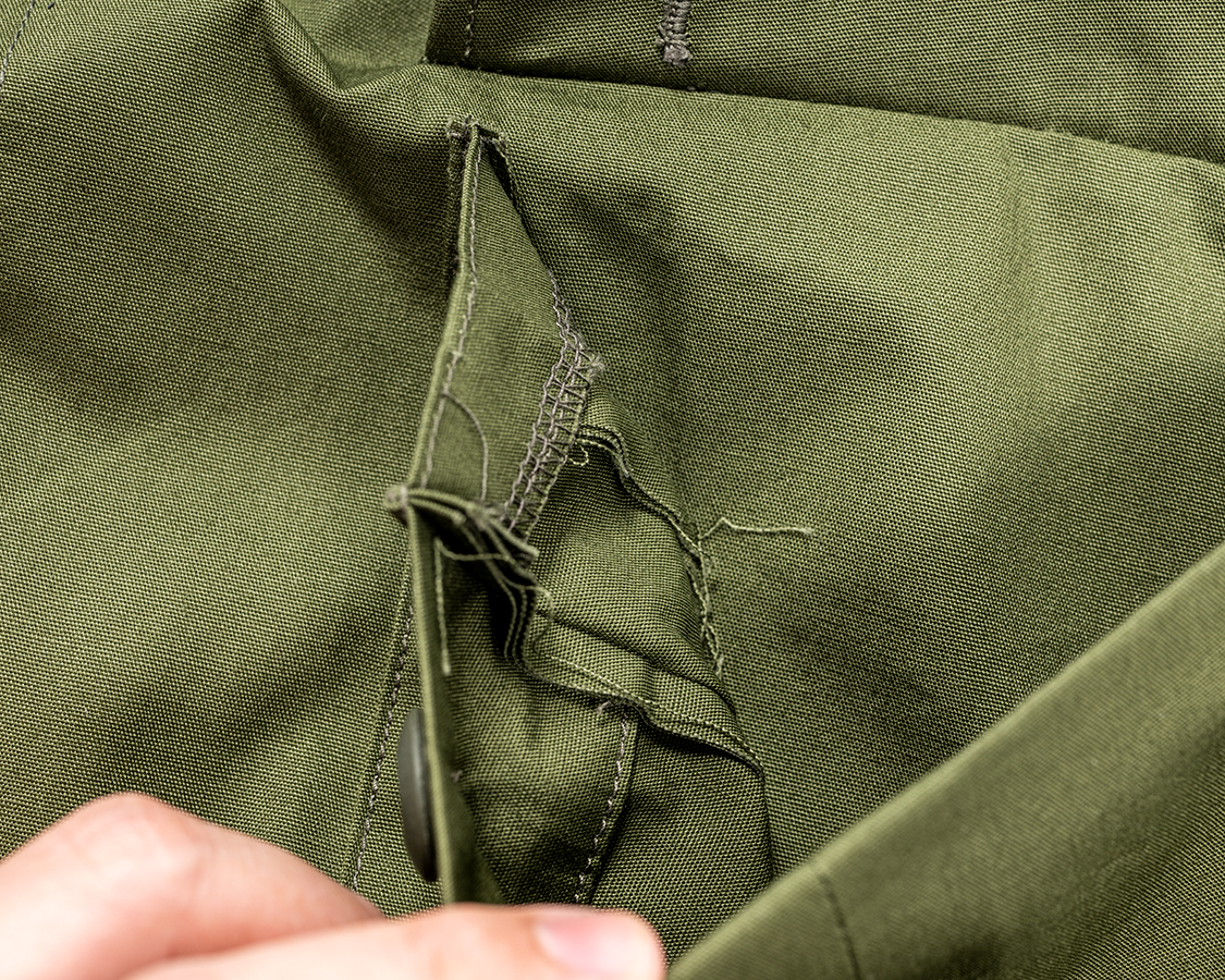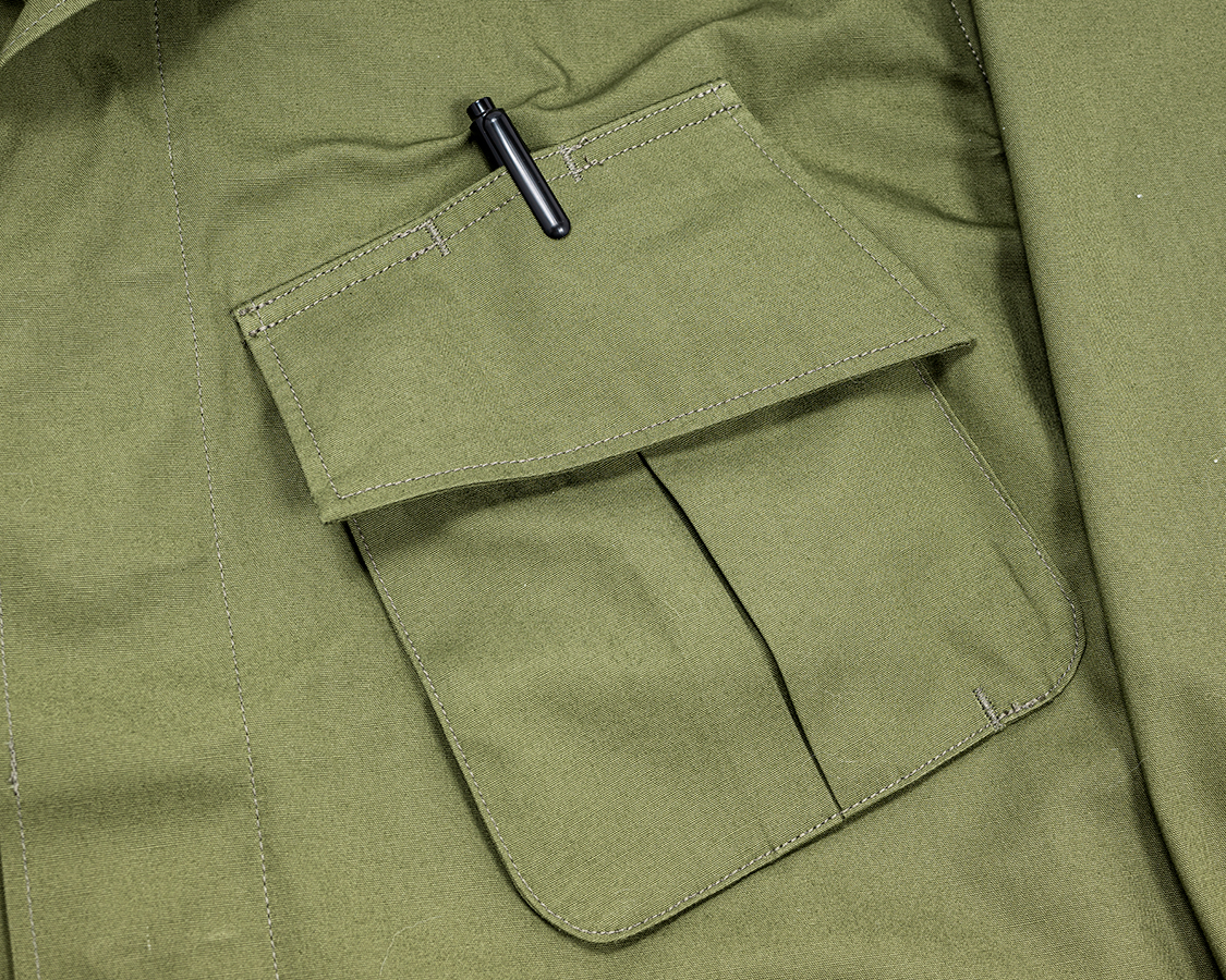 胸フラップも一部口が開いていてペンが刺さる。止まりは閂で補強。