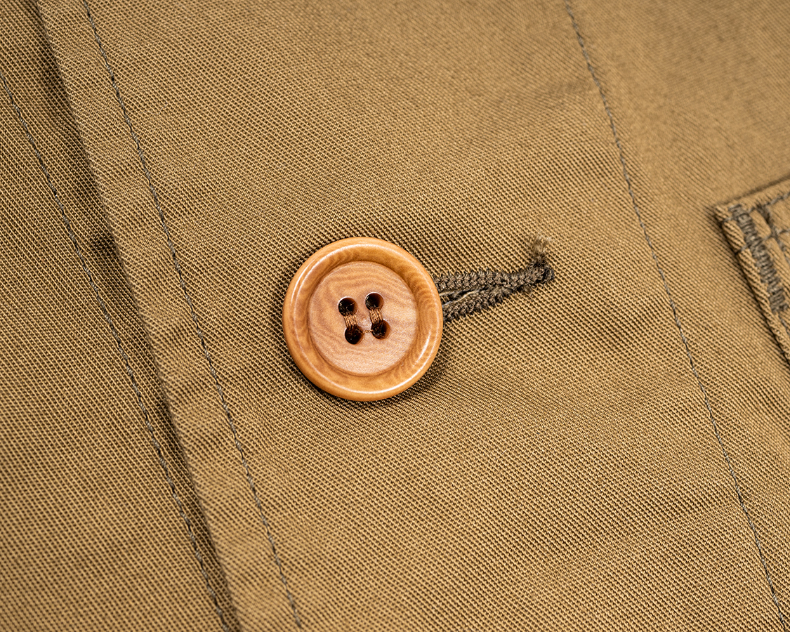 ボタンはコロゾ椰子ボタン。色が濃いと椰子感はほとんどわからないのですが、やはり雰囲気を出すため。手で触ると、樹脂とは違う、何か柔らかな風合いも好きなので。