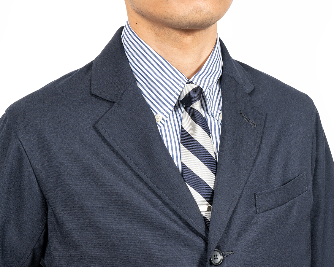 ラペルは細すぎず、かつ太すぎず。返り位置も高すぎず、低すぎずを目指して。
