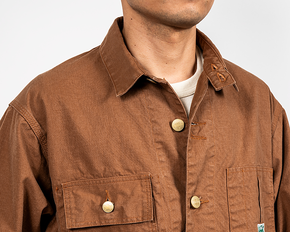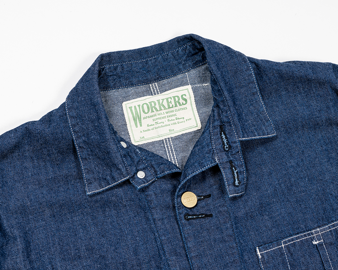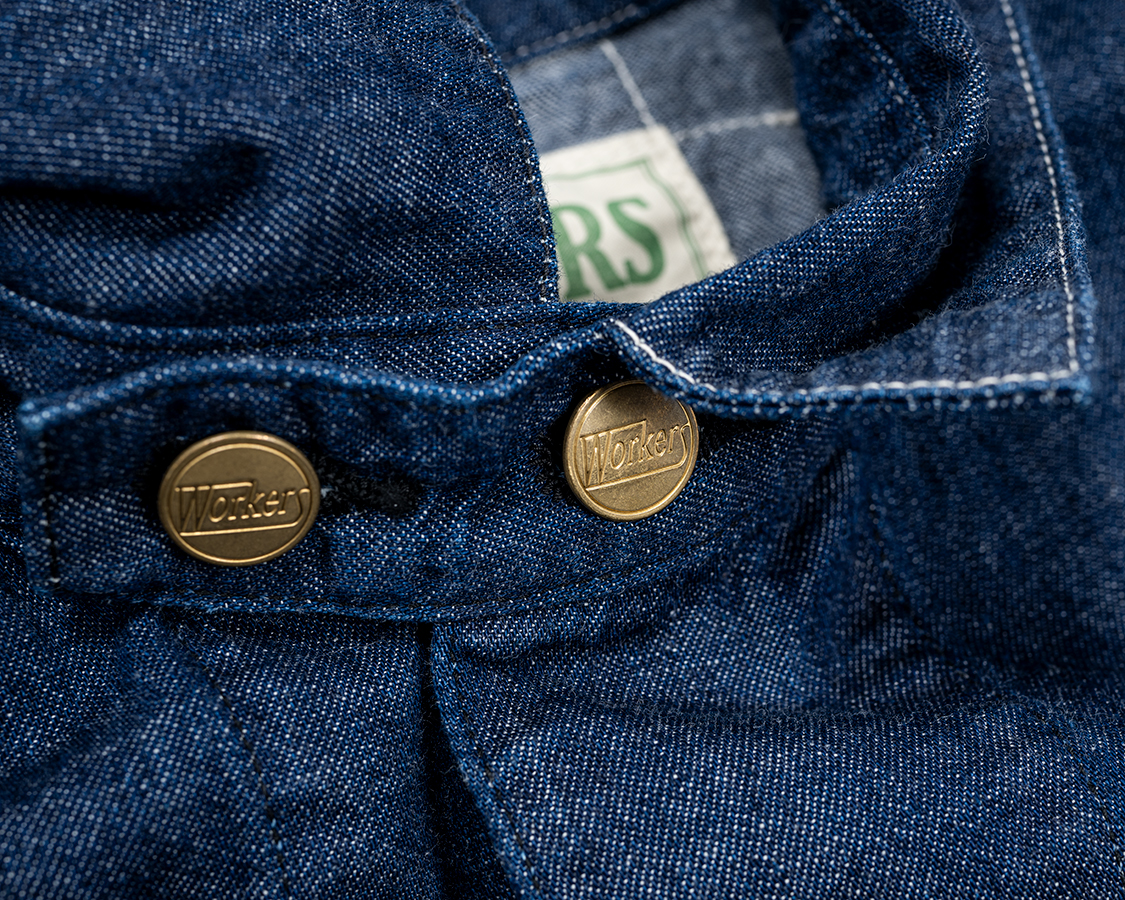 ふる~いカバーオールといえばのチンスト仕様。私は、この台襟二個ともボタンを閉めて撮るのが好き。なんとも豪華、いかにもワークウェア。