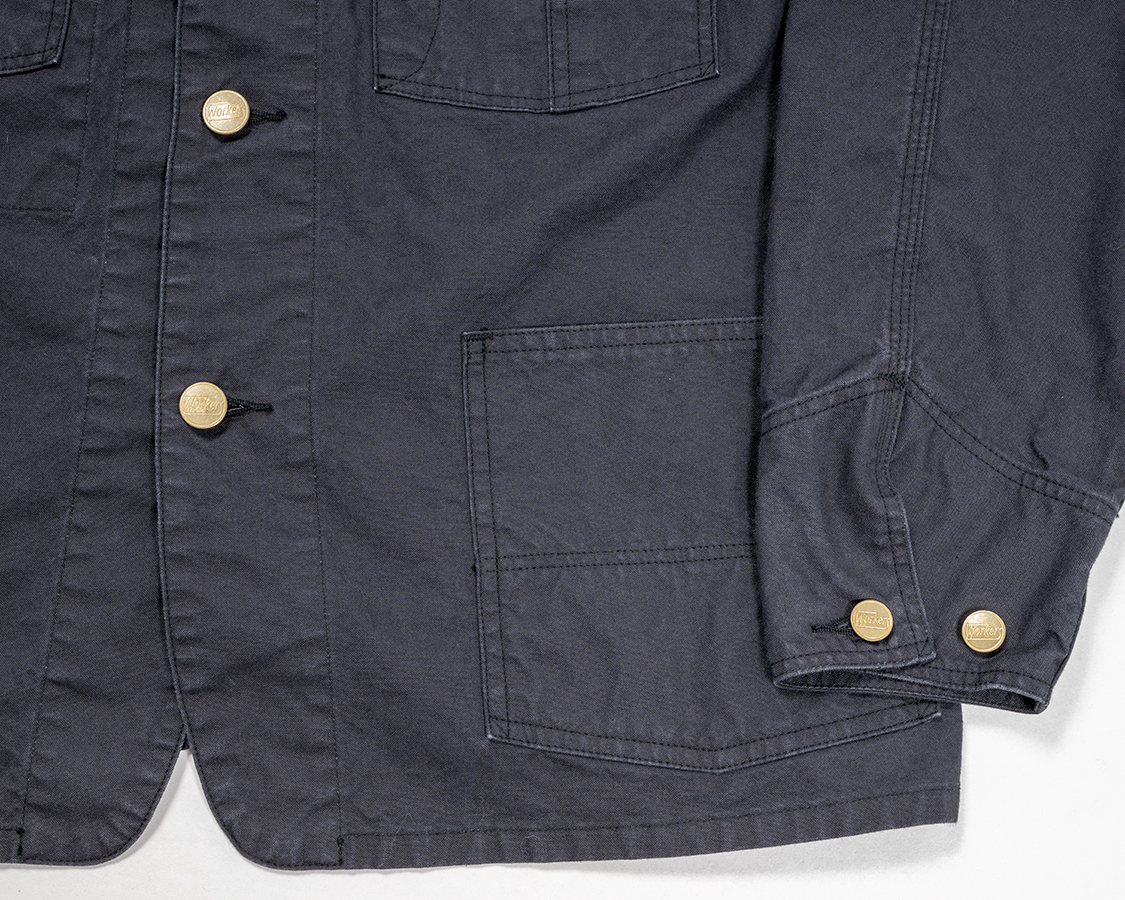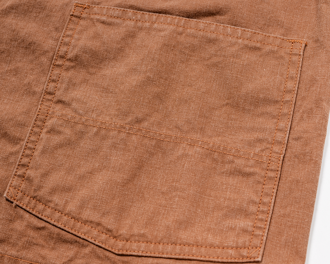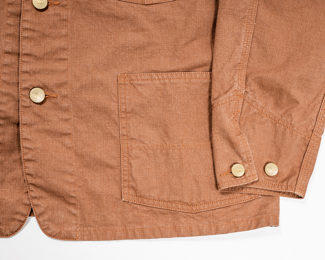 もっと前中心側に持ってくることもできるのですが、なぜか古いカバーオールはこんな感じで左右についていることが多い。確かに、左右に寄せた方が手は入れやすいか?