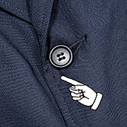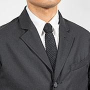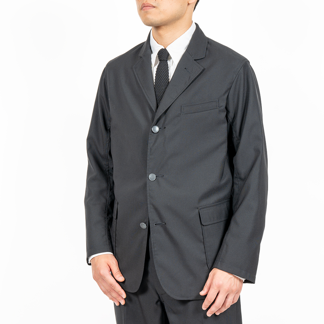 コンバットウール新色のブラックはアメリカ・ウォーターベリーの金属ボタン。やはり黒のトロピカルスーツ=ブルースブラザーズです。