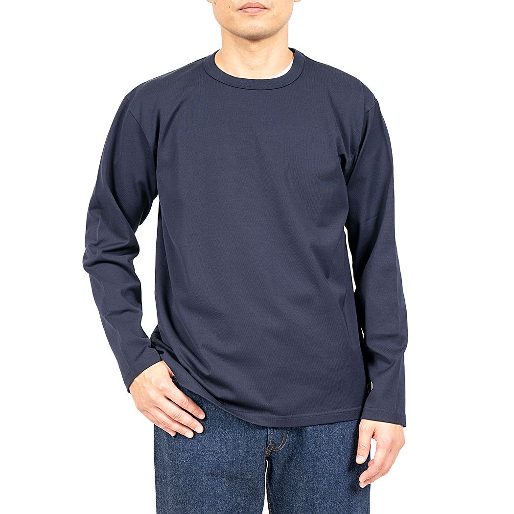 ボディは9オンスの天竺編み。いわゆるT シャツ生地の編み方と同じですが、糸に工夫があります。