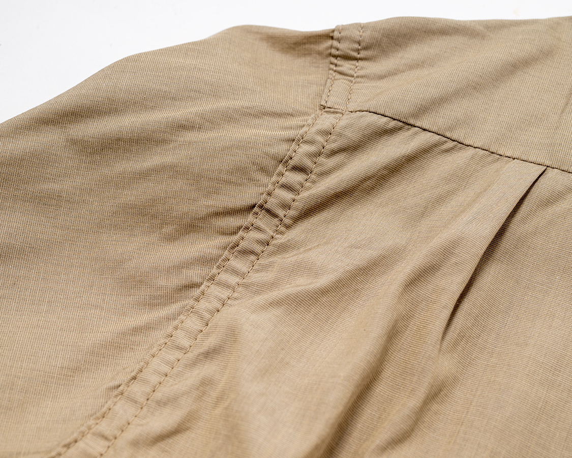 背面。ヨークの下、身頃にタック入り。これで「肩幅は落ちすぎない、身頃はゆったりした横方向のゆとり」を確保。
