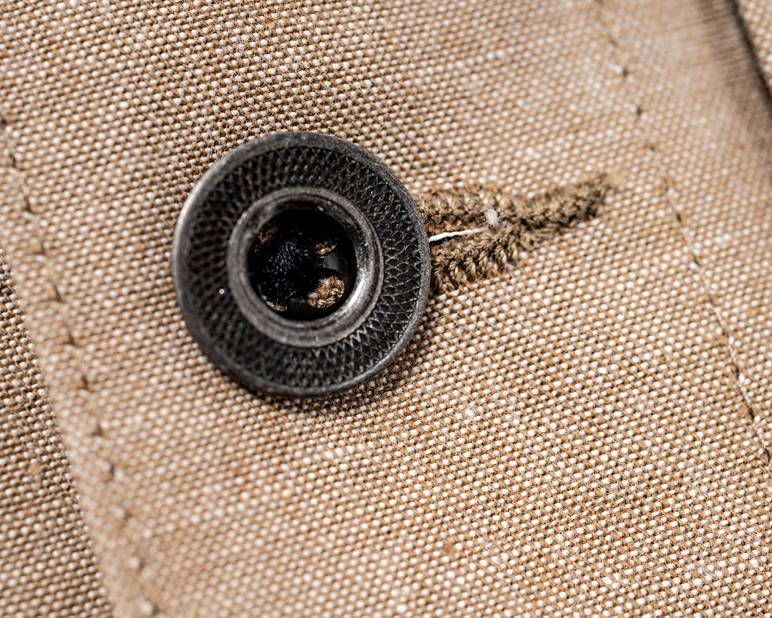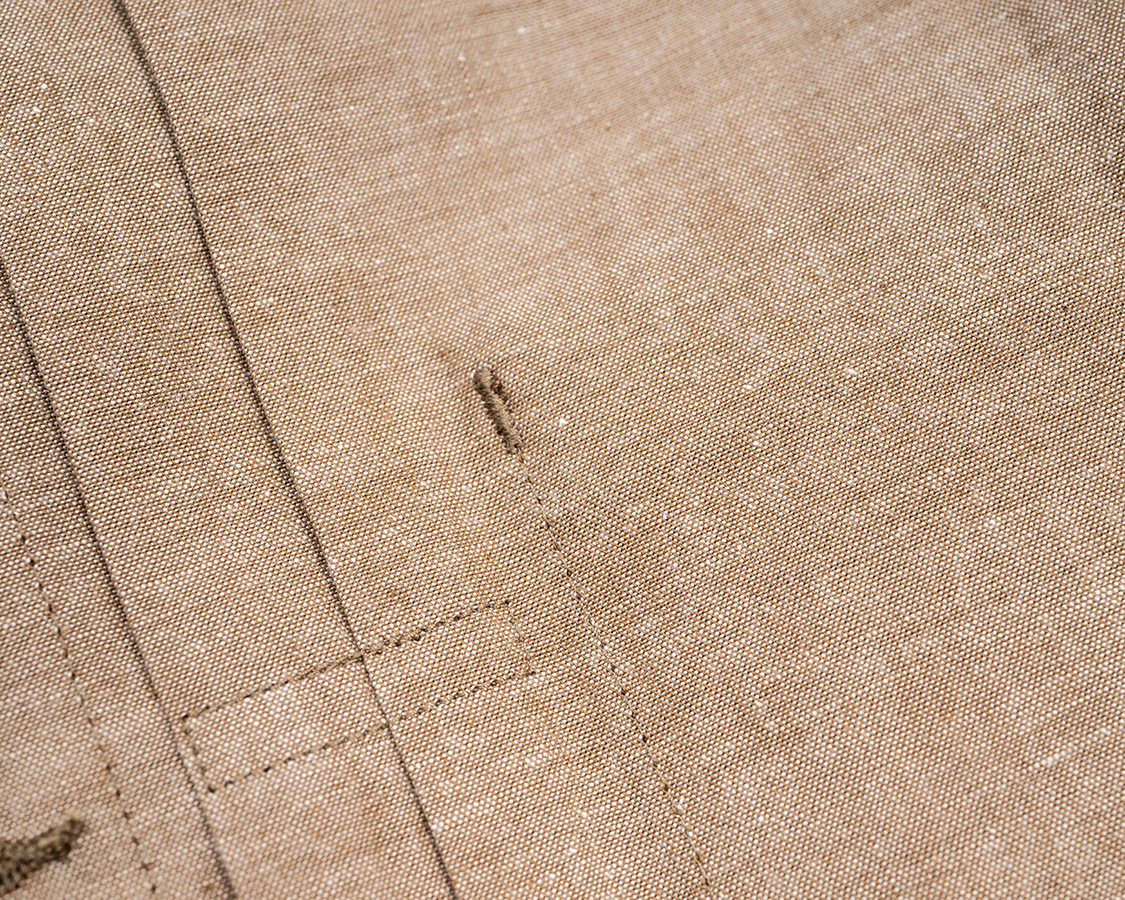 ポケットつけの負荷がかかる場所はカンドメで補強。でも、生地自体が13オンスデニムのように厚くは無いので、あまり力はかけないようにしてください。