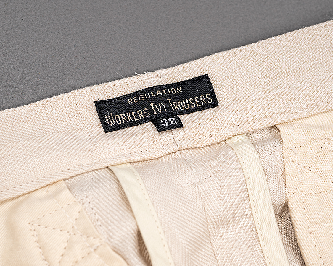 Officer Trousersよろしく「IVY Trousers」。私自身、若いときは「アイビー?何それ?」でしたが、年取るとこれも本家アイビーリーグから日本で発展した1ジャンルとして受け入れられるようになりました。