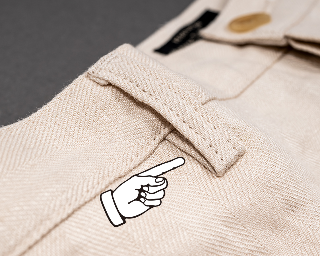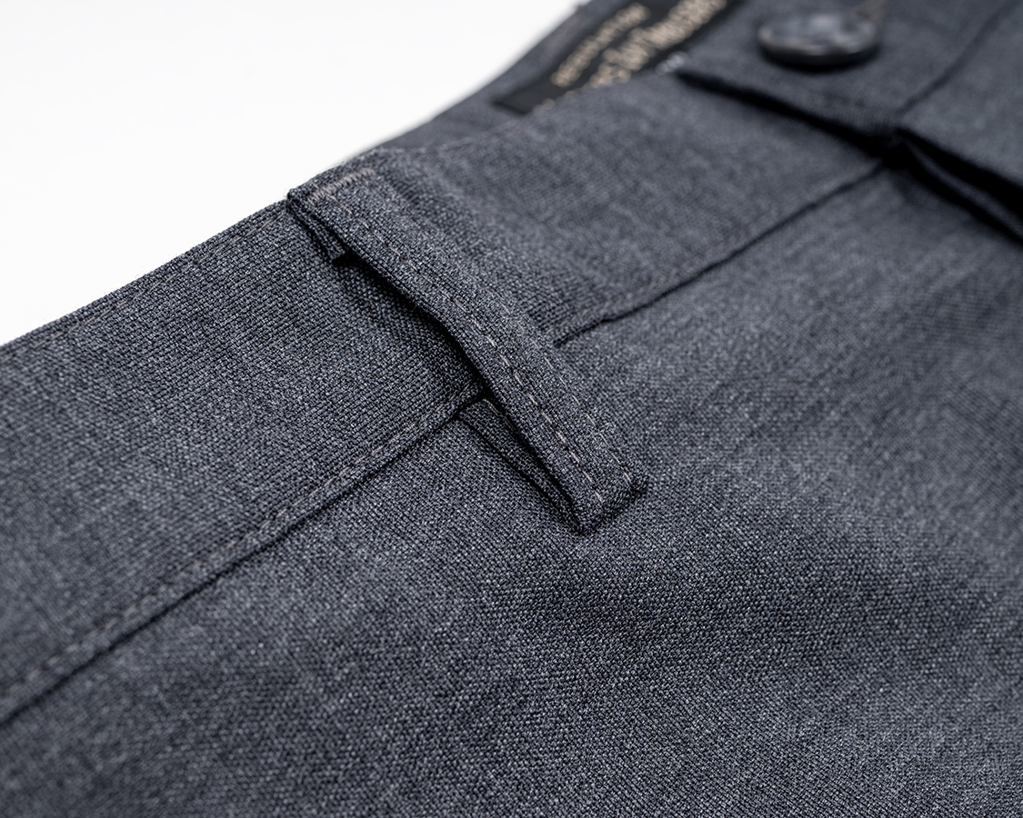 フロントにタックが無いプレインフロント。脇の縫い目利用ポケットで、ぱっと見はポケットが無いように見えます。