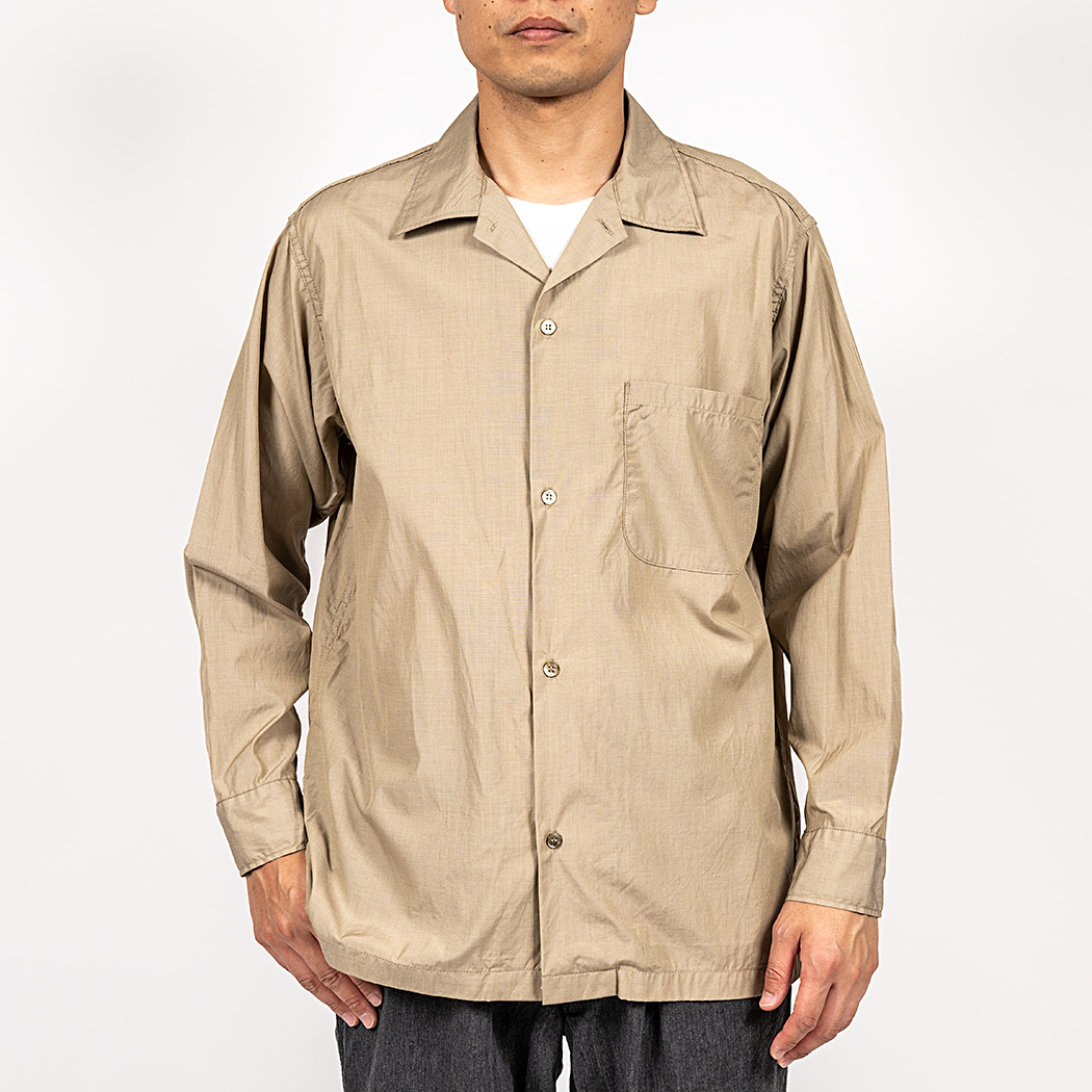 | Open Collar Shirt, Beige Broadcloth |