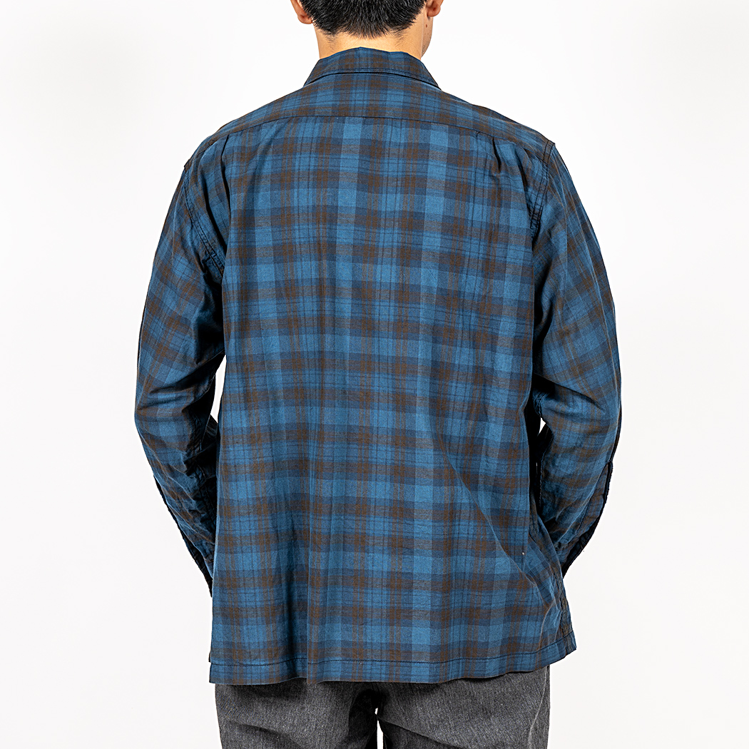Open Collar Shirt, Indigo Madras