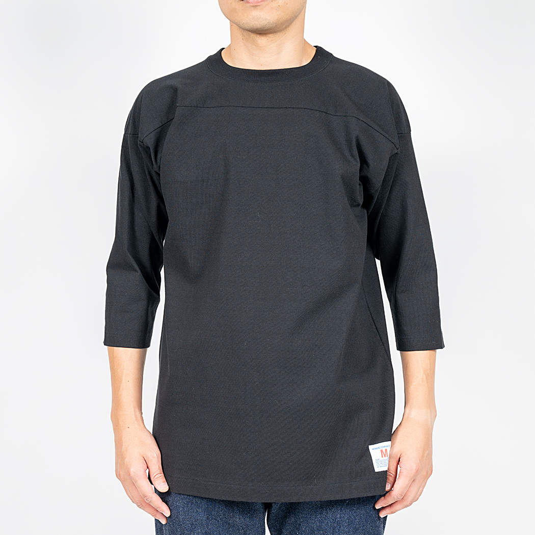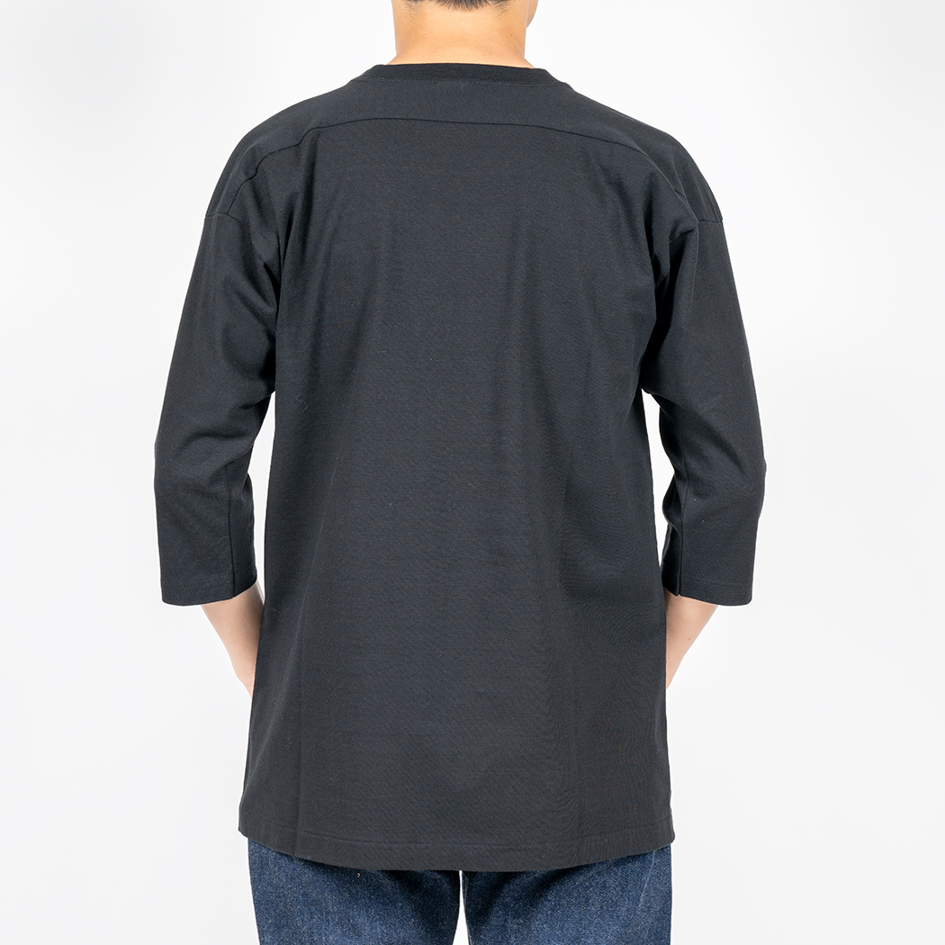 素材は16番単糸の天竺。7オンスなので、2PLYの5.7オンスより厚い、重い。ガサっとして固めの風合い。
