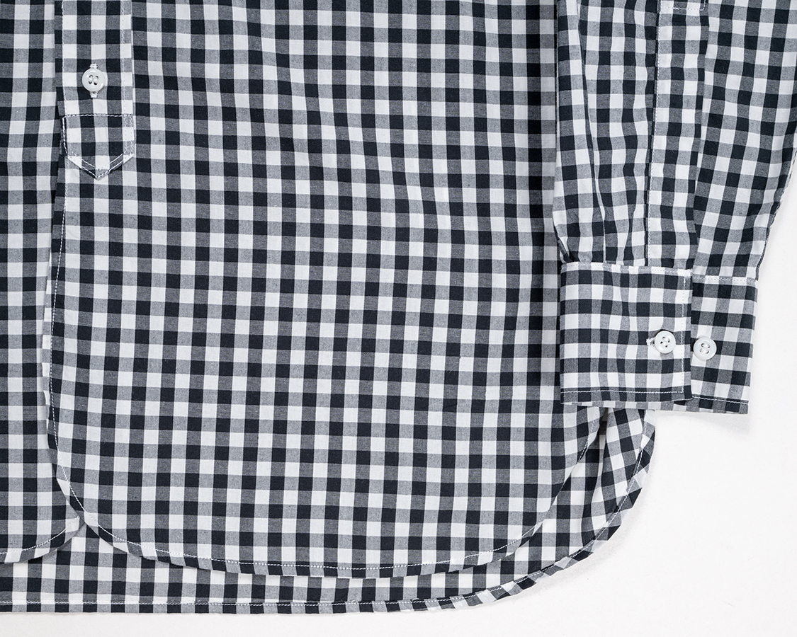 Band Collar Shirt, Gingham Poplin |