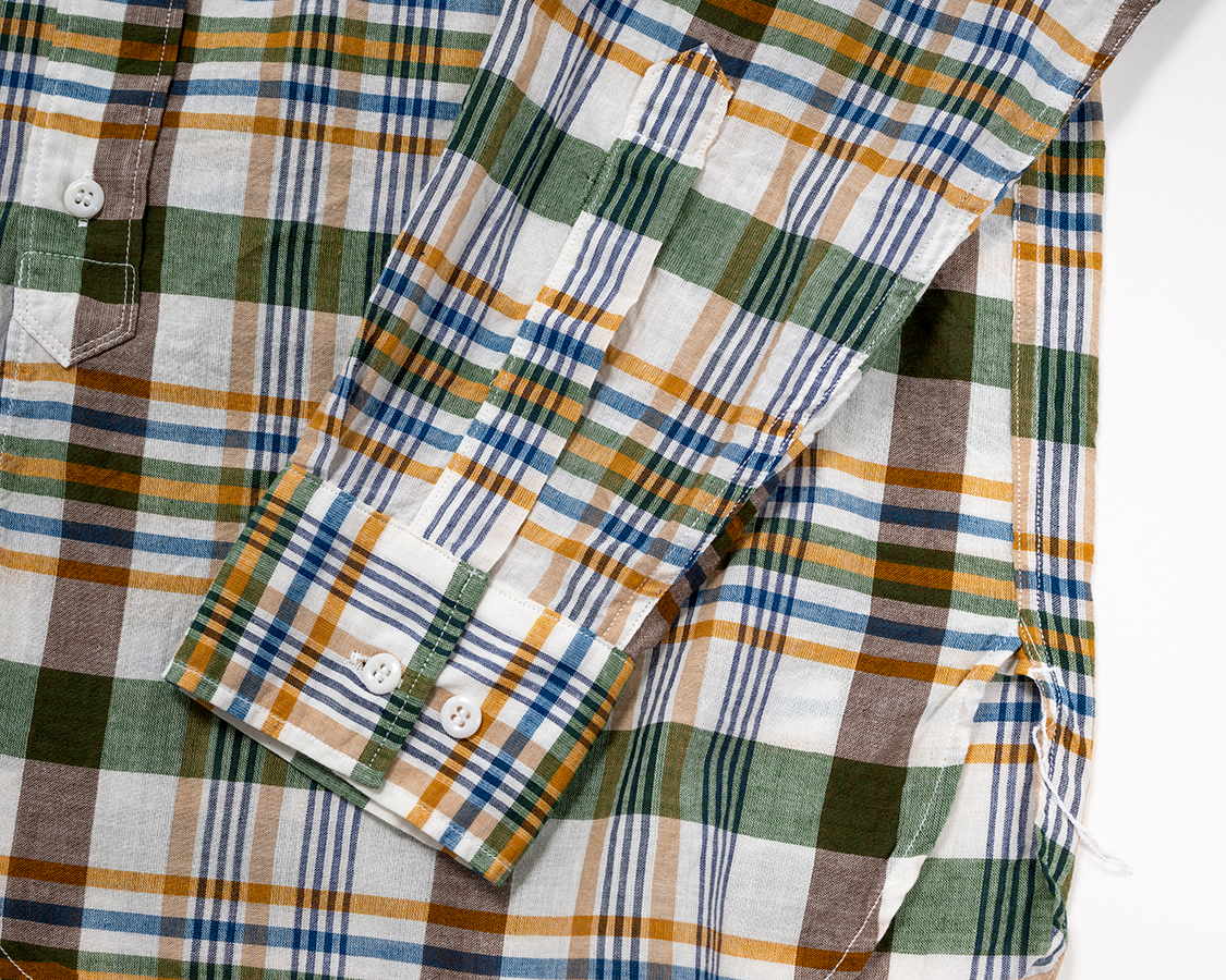Band Collar Shirt, India Madras Blue |