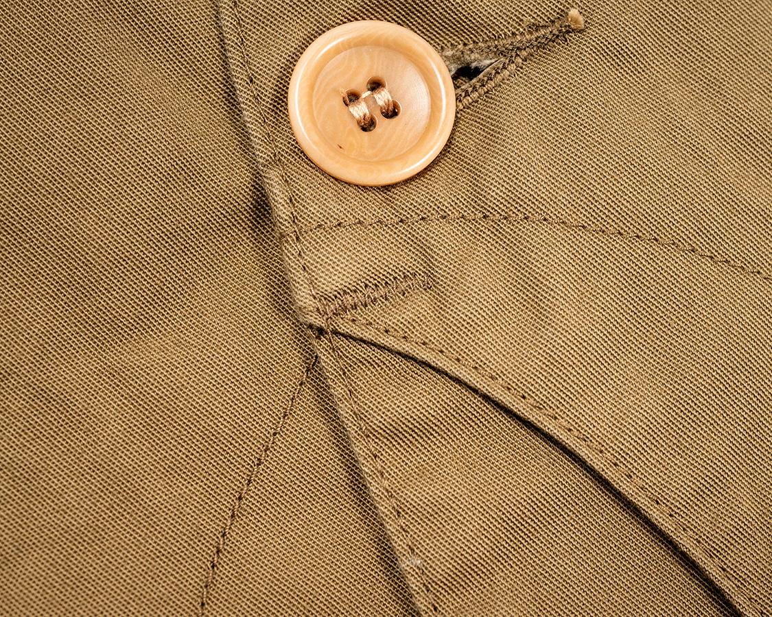 ボタンはコロゾ椰子を染めたボタン。薄色に染めたものは、素材のマーブル模様が出ています。