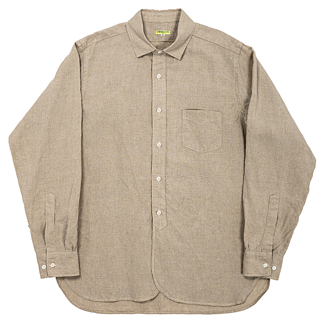 他の仕様はBand Collar Shirtそのまま。肘にゆとりがあり、ゆったりとした着心地。 |