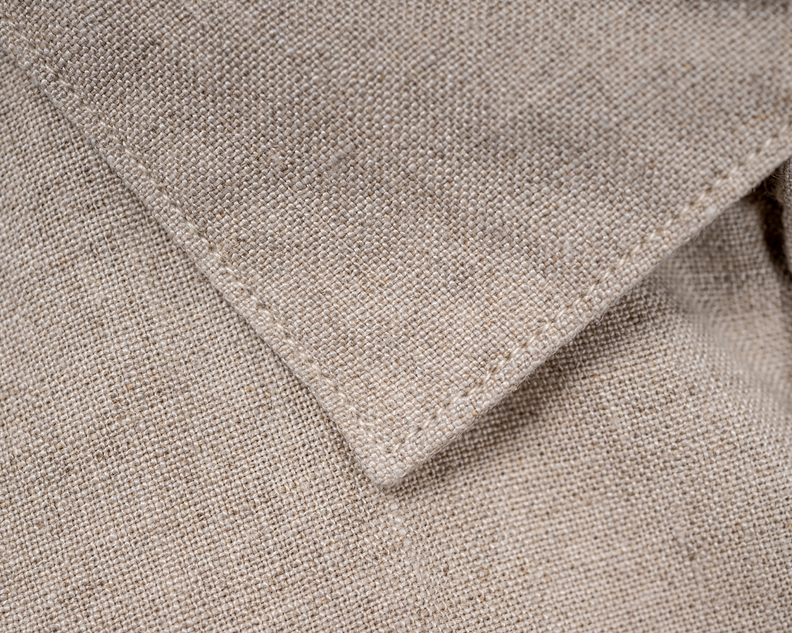襟型が悩んで、ボタンダウンは違うしレギュラーカラーも、ラウンドカラーも違う。台襟はありつつ、羽襟は四角い、「スクエア」な形で、台襟までボタンを締めるとちょっとワイドスプレッド気味。これはもう好みです。単純に私が好きな形。