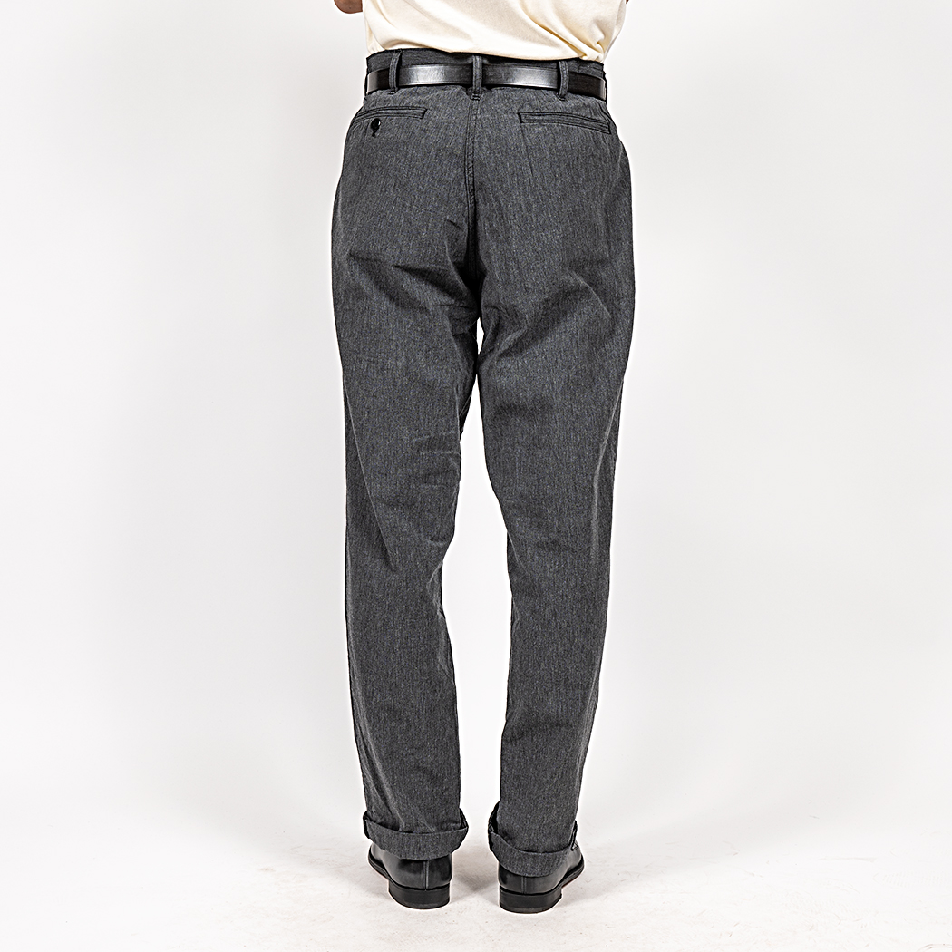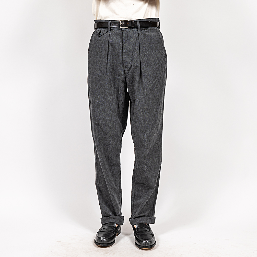 ブラックシャンブレーが一番薄い5 オンス。とにかく涼しい生地を!という方はブラックシャンブレー、一択。FWP TrousersやSummer Trousersを作りはじめたきっかけの一つがこのシャンブレー生地。