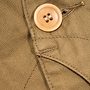 素材、Navy / Khaki Twill は6 オンスほど。デニムが7 オンス。表・裏、同じ生地を使っているのでどちらもそれなりのしっかりした厚みで強度バッチリ。タイガーストライプは「ほぼ60/40 クロス」の混率の生地にプリント。ナイロンは綿よ り比重が軽いので5オンス。 |