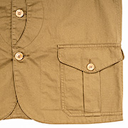 本来、ハンティングで獲物を入れたり、道具を入れて両手をあけるための「道具服」で、 WORKERS版も「着るバッグ」といった雰囲気。