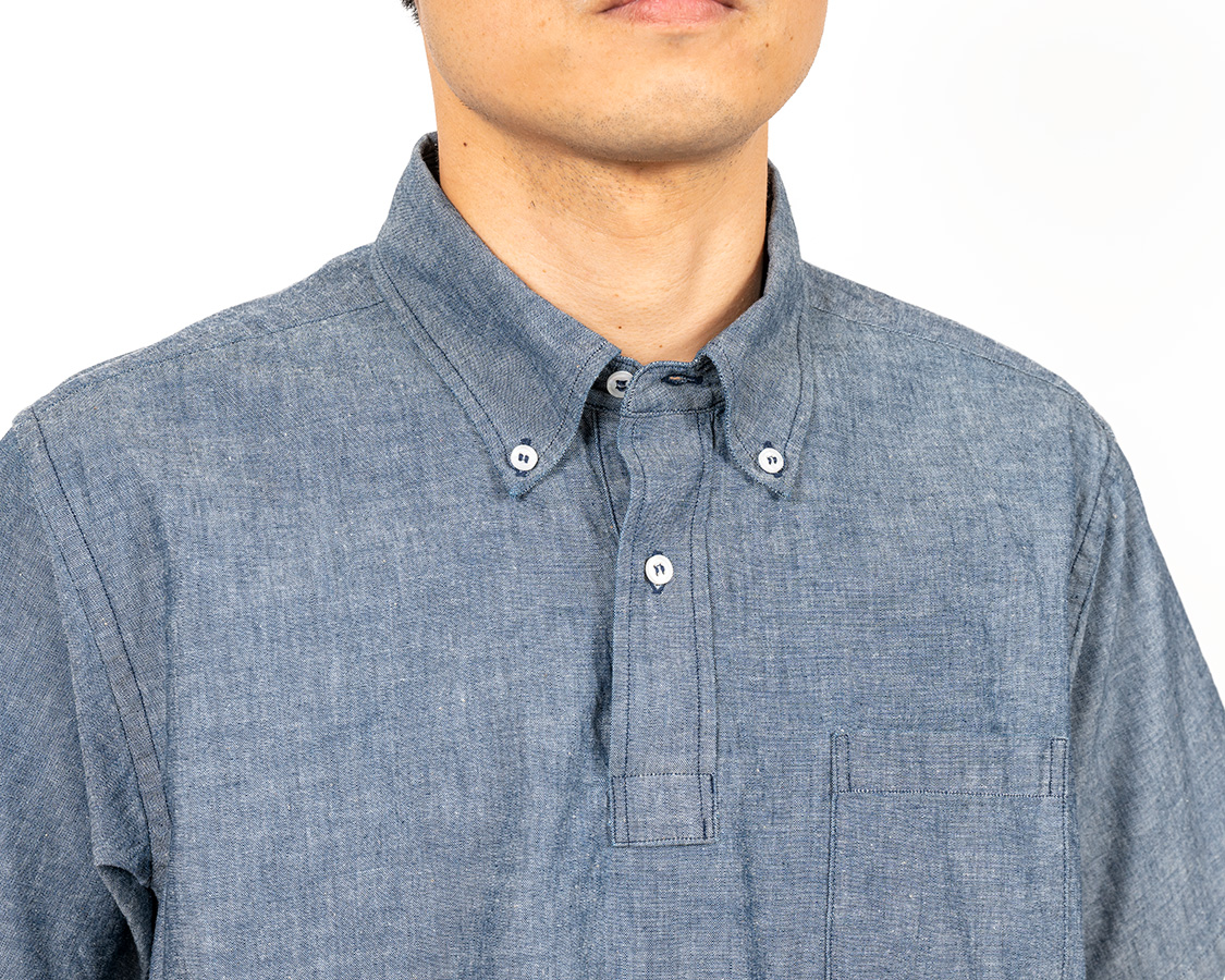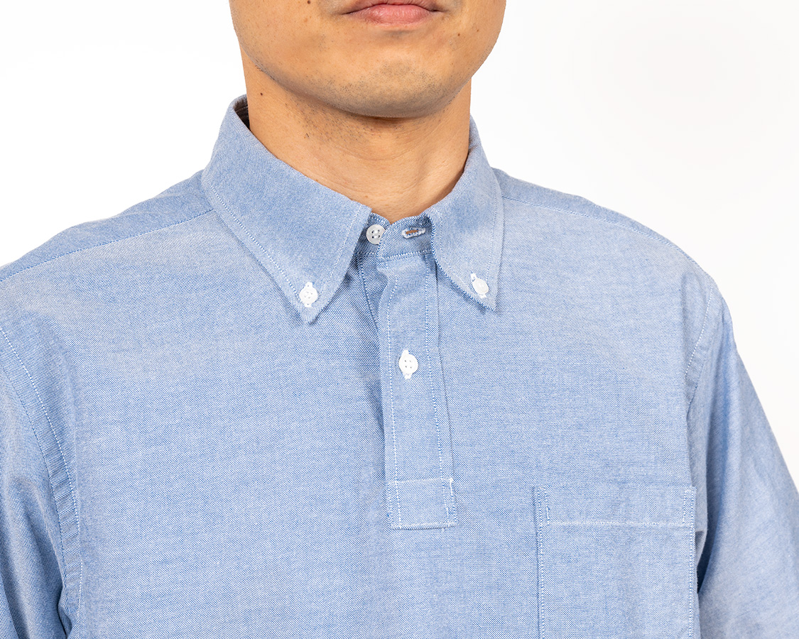 元々「ポロシャツをシャツ生地でつくったら?」で始まった企画。今年はその襟をボタンダウンに。ただ、Modified BDや6 Button BDとは違い少し小さめの襟。