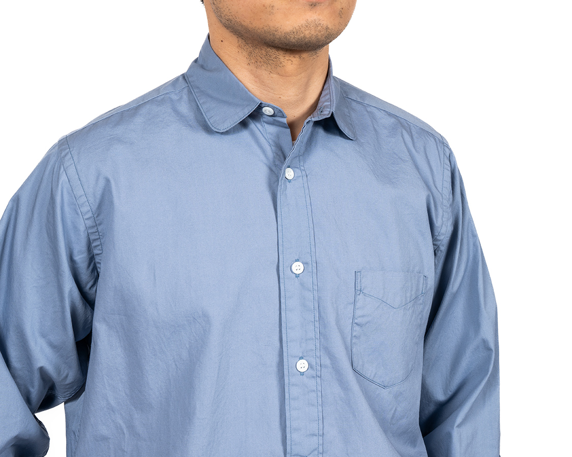 Round Collar Shirt, Poplin, Blue Grey |