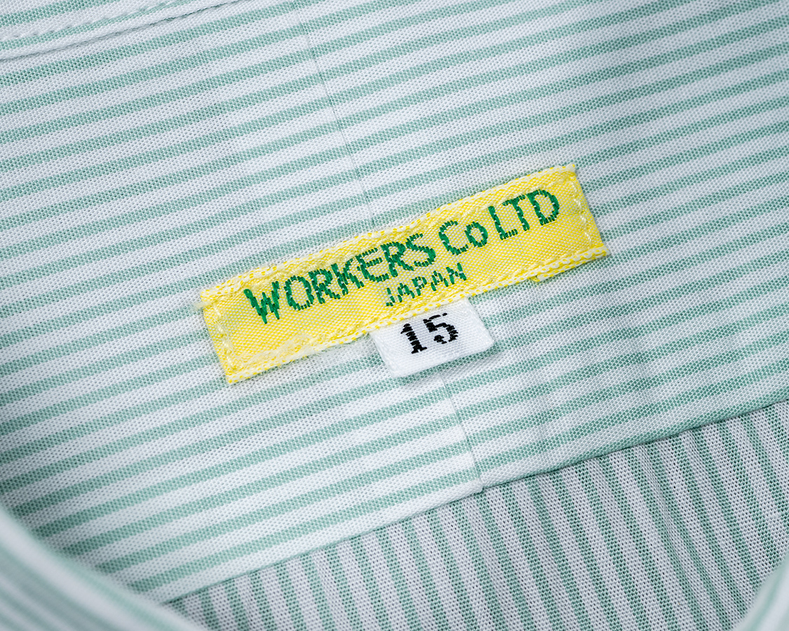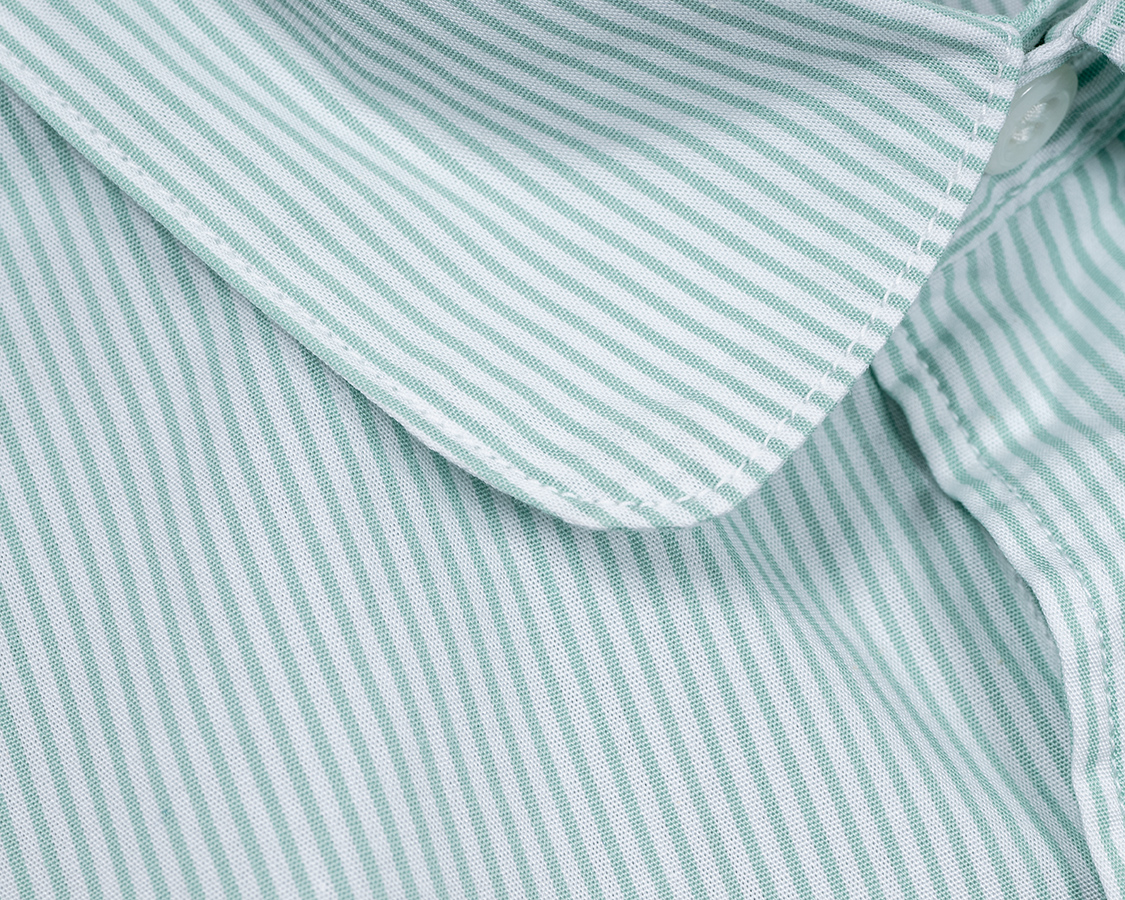 Round Collar Shirt, Green Stripe Poplin |