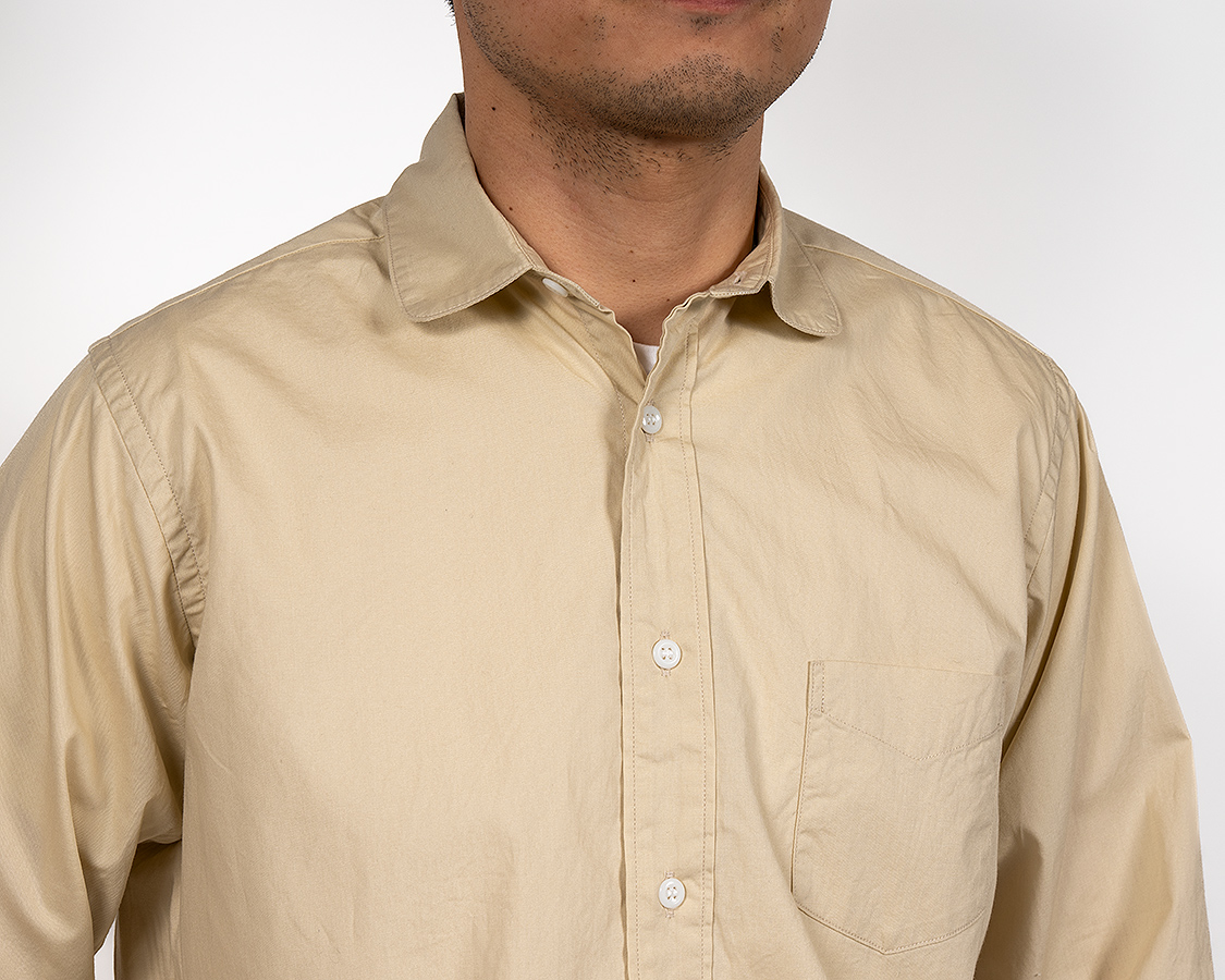 Round Collar Shirt, Poplin, Beige |