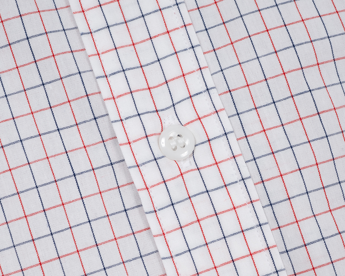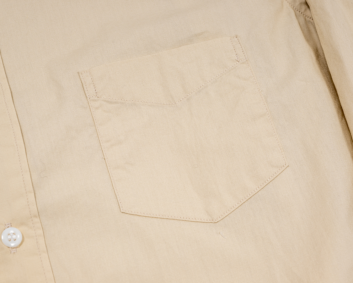 フロント一番下の始末。もともと、イギリスのミリタリー?らしきシャツでこの始末を見つけて再現しています。いわゆる「クラシックなシャツはフロントの裾部分が丸みがあって、下着の代わりに」云々というデザイン。理由は本当かわかりませんが、確かにクラシックなシャツでは見るデザイン・始末。