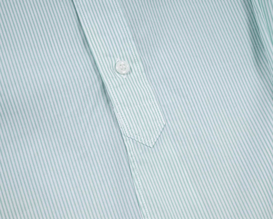 左胸ポケット。ドレスシャツ的にはポケットなしなのですが、実用性を考えて。