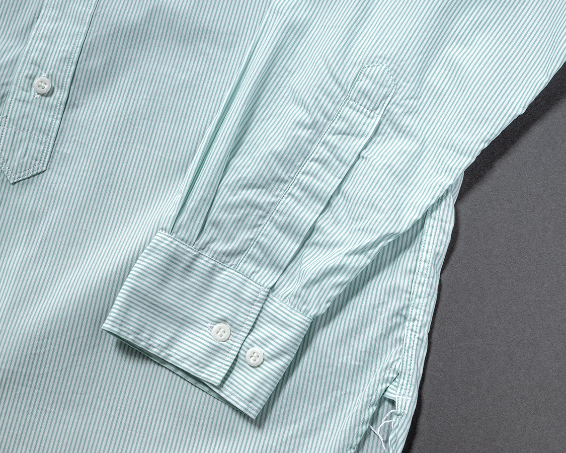 Round Collar Shirt, Green Stripe Poplin |