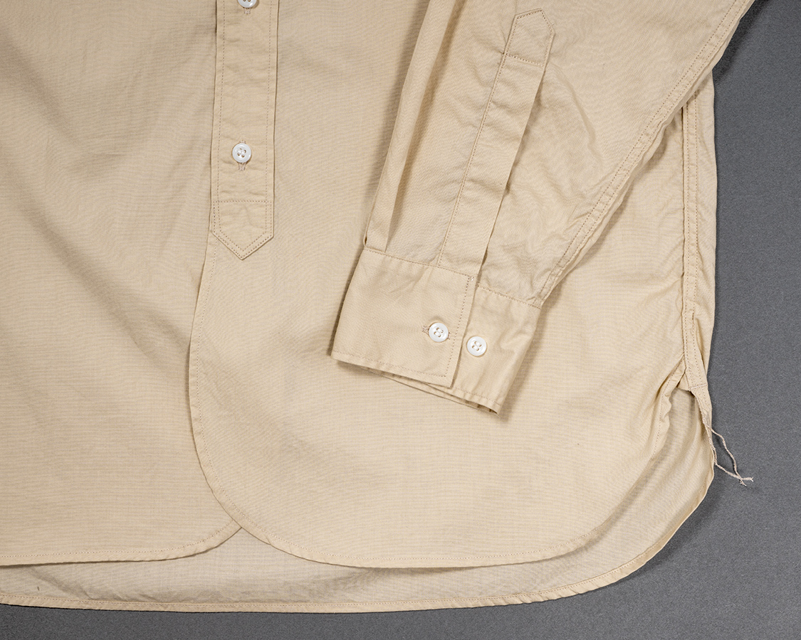 袖口はタック入り。参考にしたオリジナルはフレンチカフでしたが、そこは使い勝手を考えて、通常のカフスに変更しています。