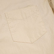 無地は生地染ポプリン。タッターソールとストライプは糸染。厚みはほぼ同じ3オンスほど。ただ、ほぼ同じ厚みでも触った風合いが生地染はちょっと固く、糸染の方が柔らかい。生地の仕上げでどうとでも変えられる部分ですが、同じような打ち込み・仕上げをすると「生地染>糸染>トップ(綿)染め」の順で手触りに固さが出るように私は感じます。生地値が抑えられた分、オックスに比べて買いやすい価格。WORKERSの価格は単純にかかったコスト反映してます。