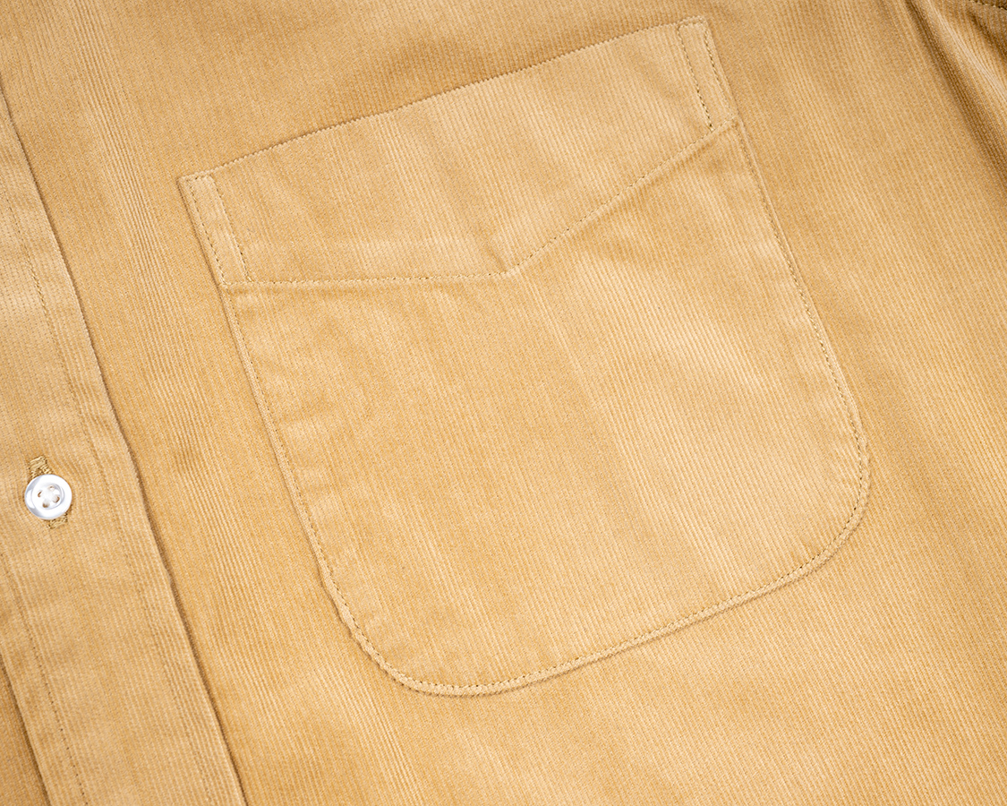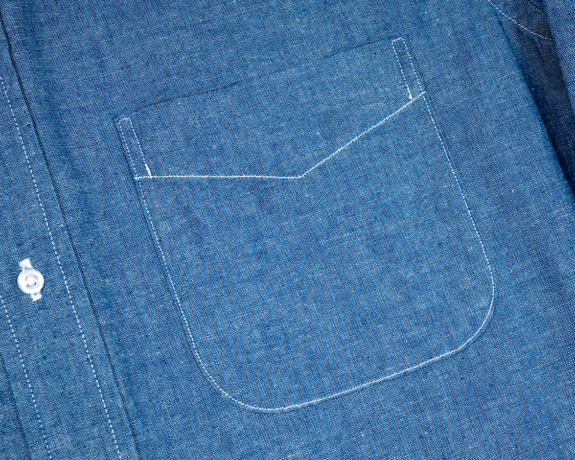 胸ポケットは樽型。下の丸みをうまくアイロンするのが難しい。Modified BDよりは少し大き目で、古着のサイズそのまま。