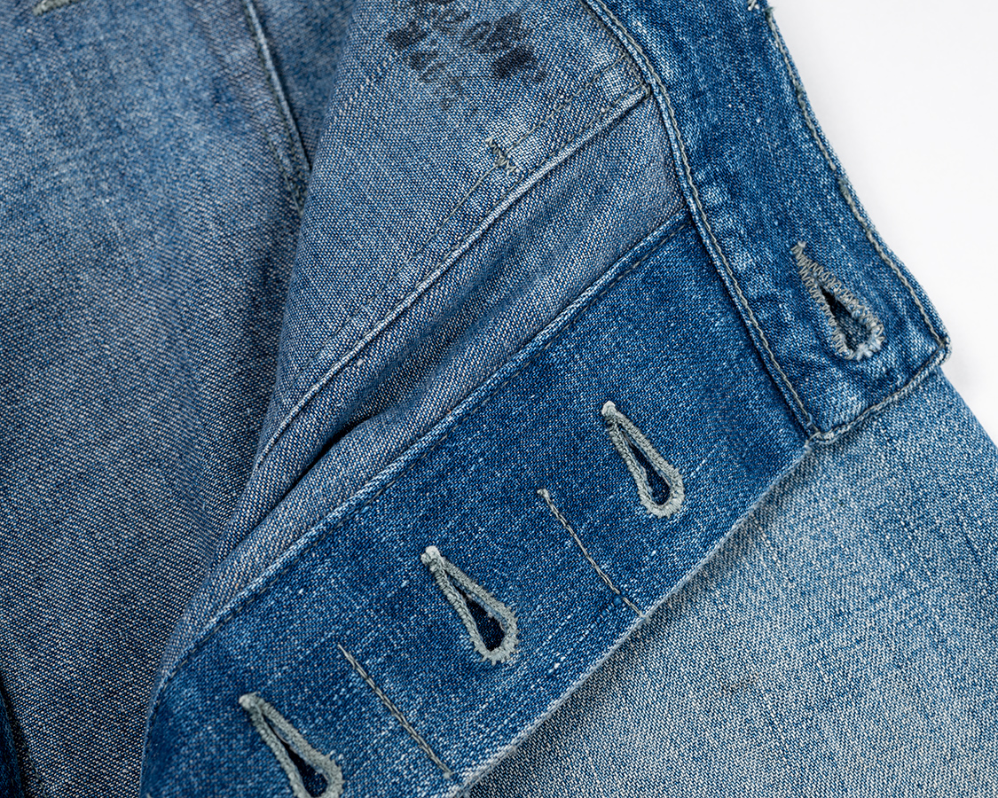 ここも普通のパンツの丸みのある比翼止めとは違う、カクカクした独特な比翼始末。その理由は・・・