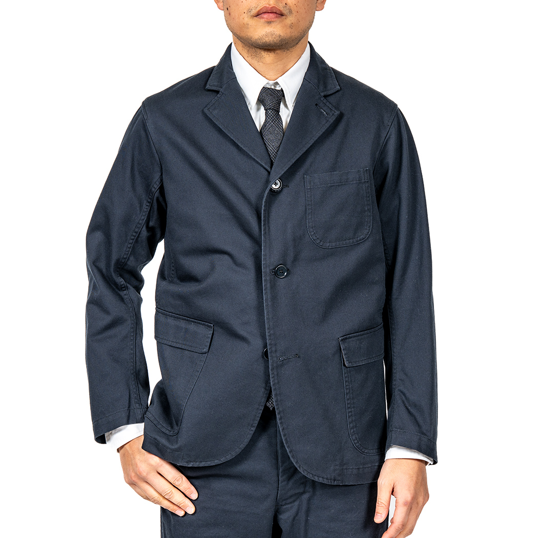 チノ2 色とデニムはOfficer Trousers とセットアップ、8 オンス。袖裏は無し。ざっくり着られる、洗ってパッカリングも出てカバーオールのようにラフに着られるジャケット。厚すぎない・重すぎないので秋口から気楽に着られます。10 オンスのがっしりした感じも良いのですが、なじ むまでが結構大変。そこで、今期は8 オンスを選びました。