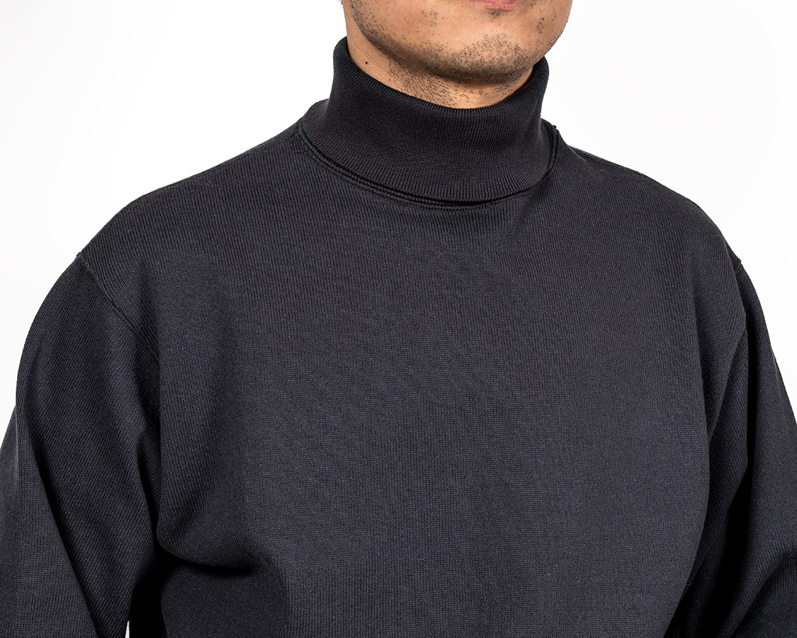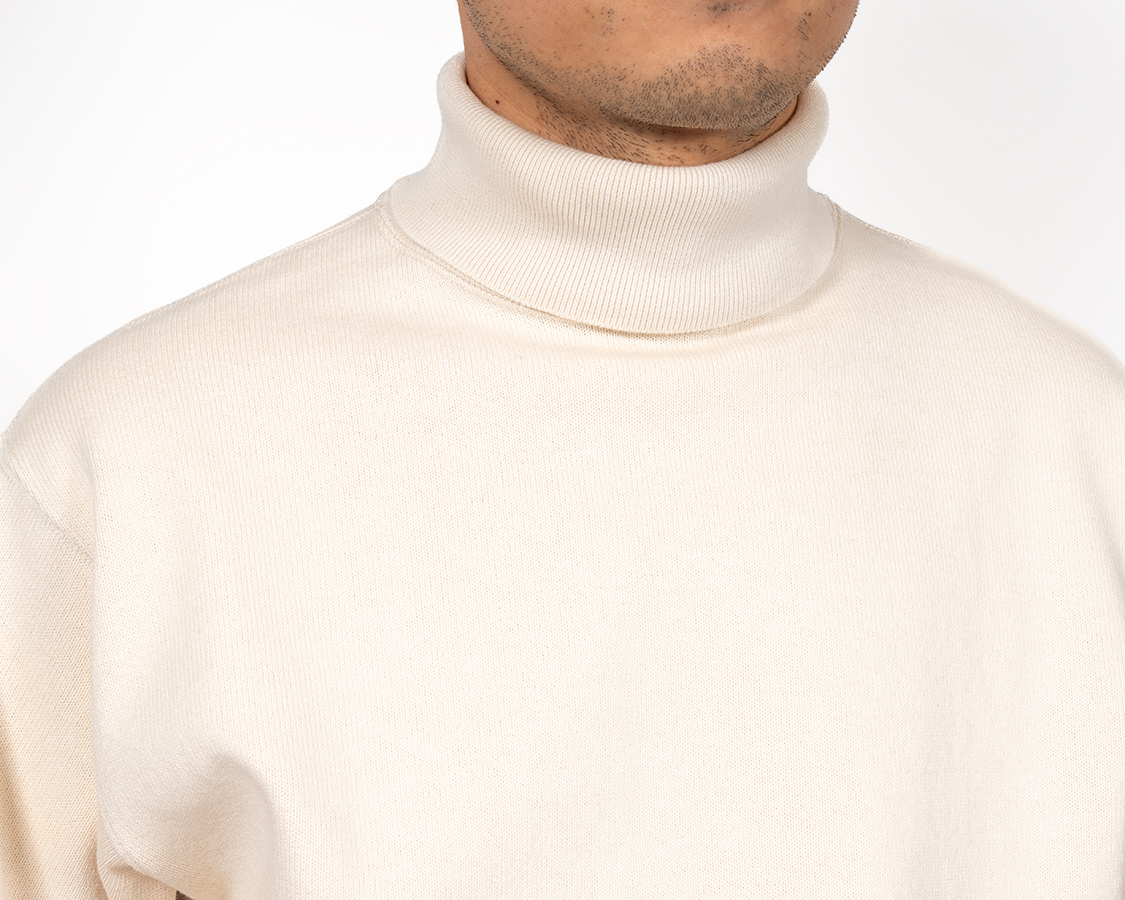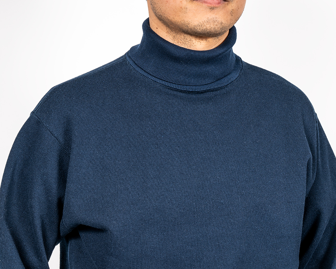 Royal Air Forceの古着セーターや、映画ダンケルクでパイロットが着ているロールネックのセーターを見て着想を得ました。