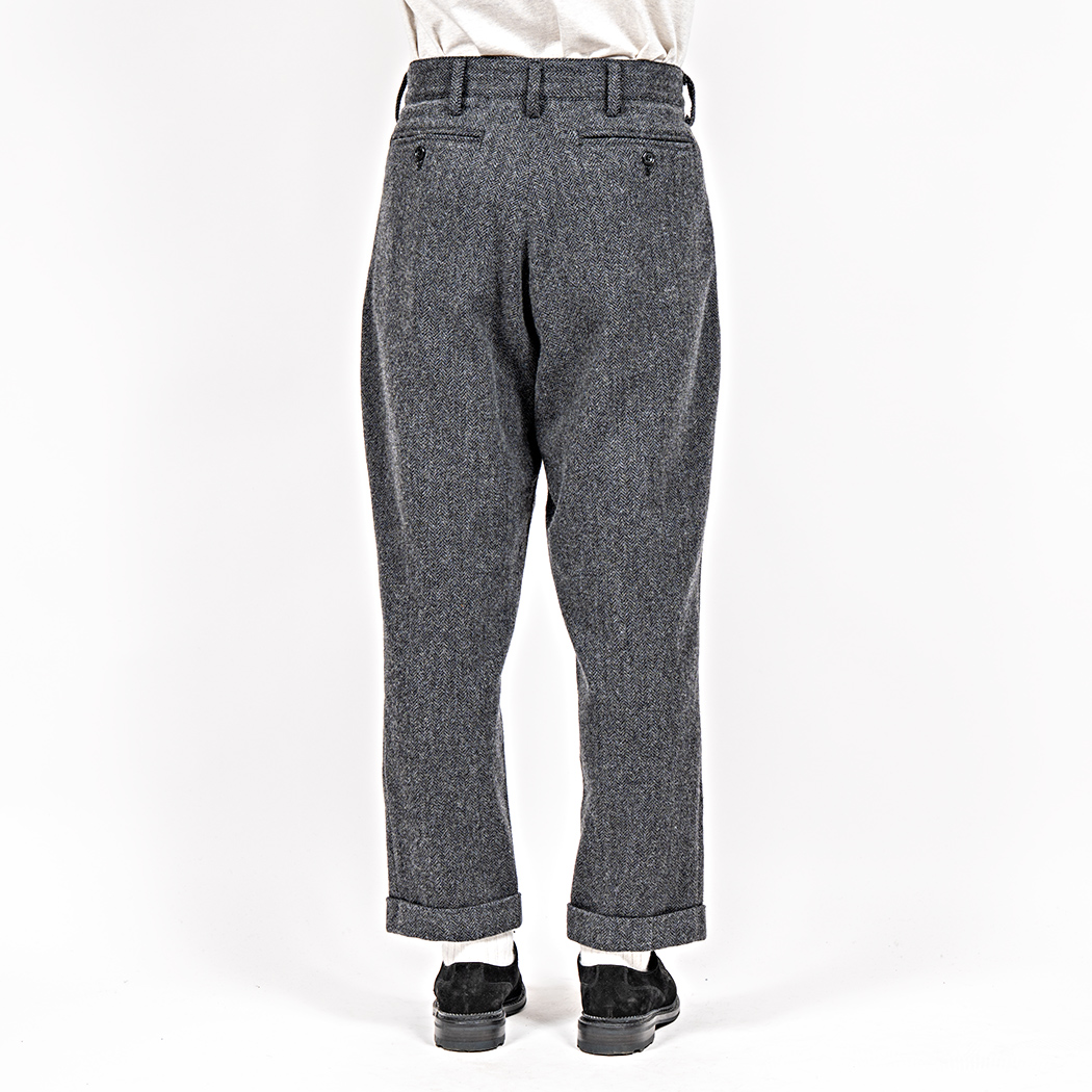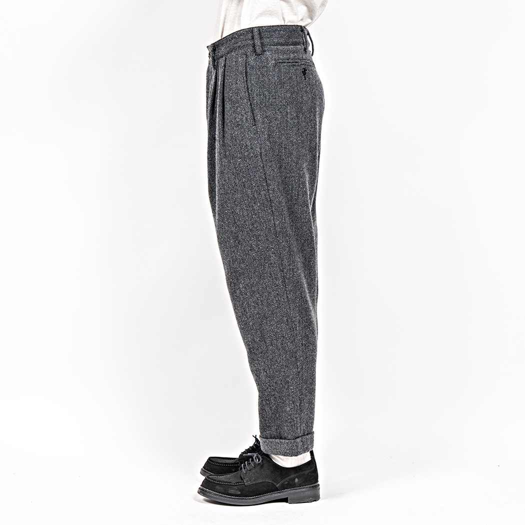 Wool Cotton Tweed は今季、WORKERS で別注したヘリンボンツイード。タテにウール、ヨコにコットン。9 オンスほど。 ツイードは中々「これだ!」という生地が生地屋さんのラインナップに無いので別注。せっかくやるなら、単純にウール 100よりヨコ糸をコットンにしてちょっとどっしり感が欲しかった。ただ、思ったより軽くできました。でも、これはこれで着やすくて良し。
