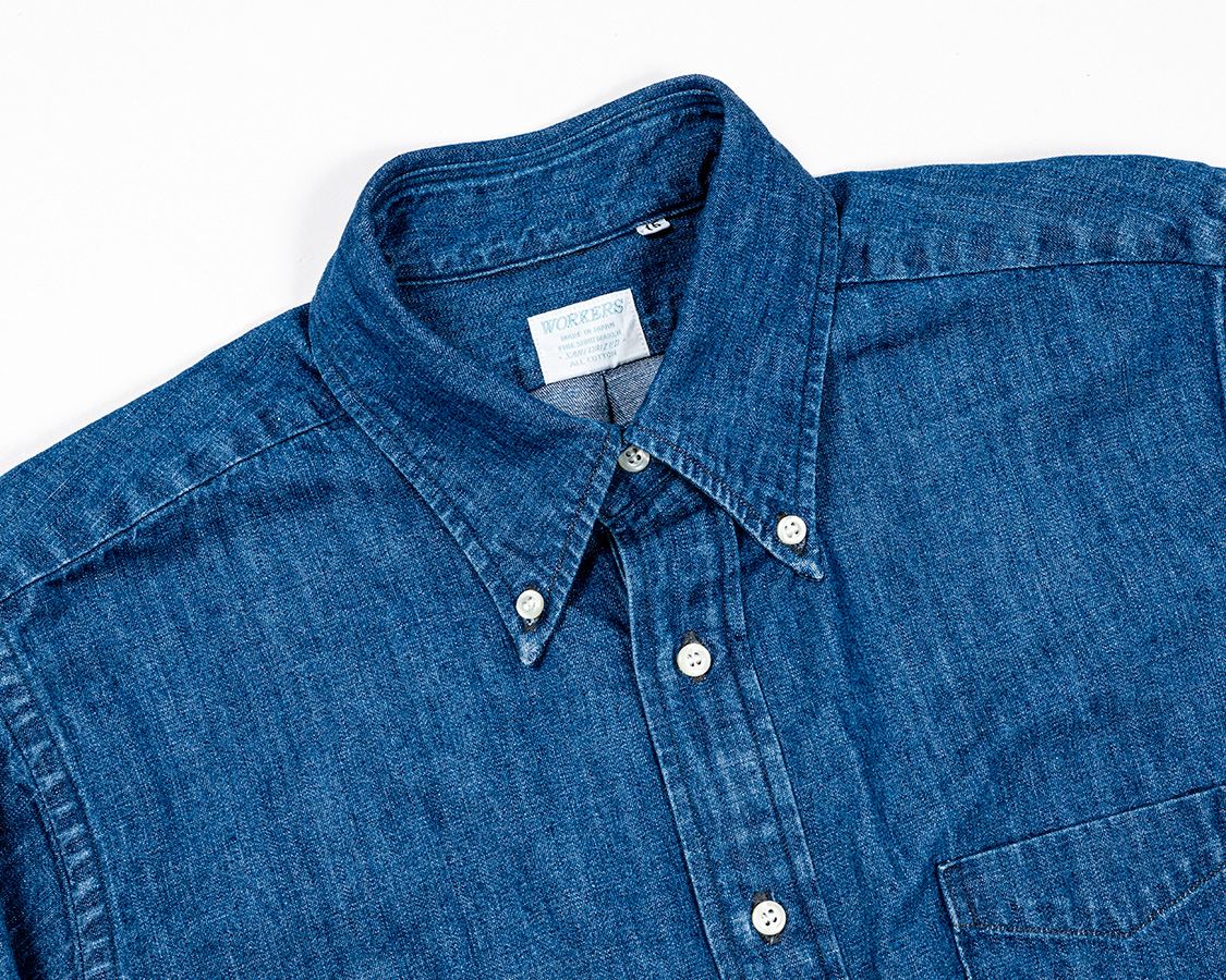 が、IVYといえばプルオーバーボタンダウン。ポップオーバーなんて言ったりもします。今までは、夏用にマドラスや薄手のオックスでばかり作っていたので今回は厚手生地で。写真は7.5オンスのデニム。シャツとしてはかなり厚手。