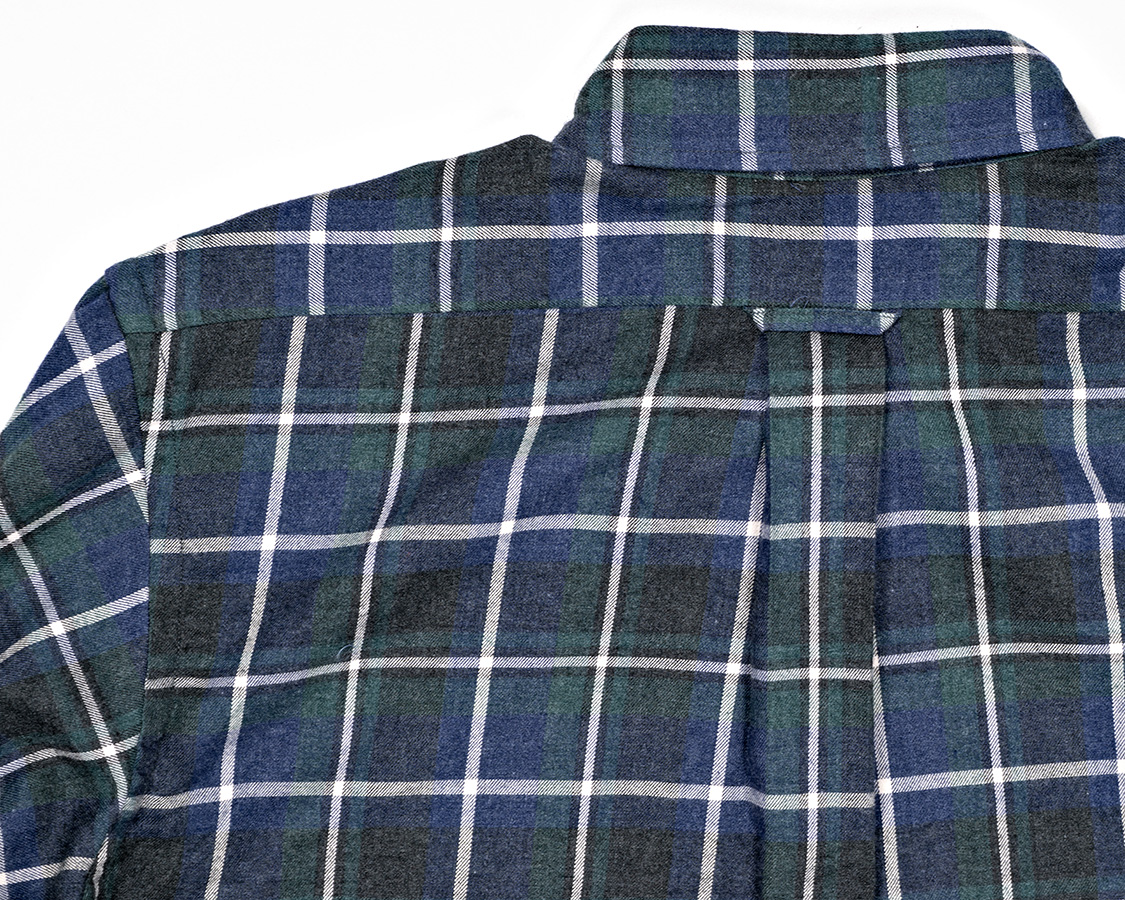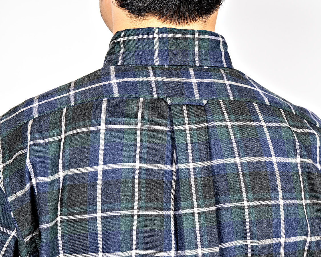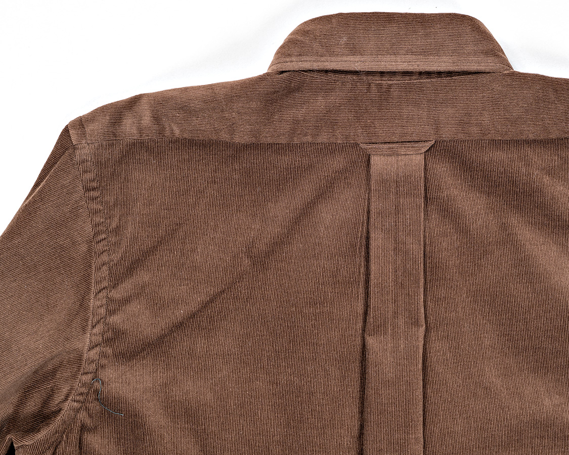 背面、センターにハンガーフックあり。実際にハンガーにつるかは微妙ですが、アイビー的ディテールですね。
