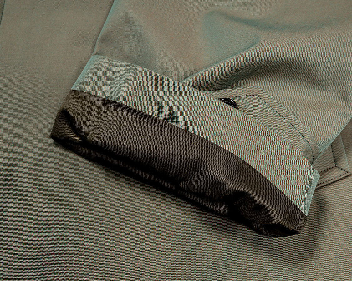 袖裏はポリエステルツイル。滑りよく、本当に縮みづらい。帯電もほとんどしないし、非常によくできた生地です。
