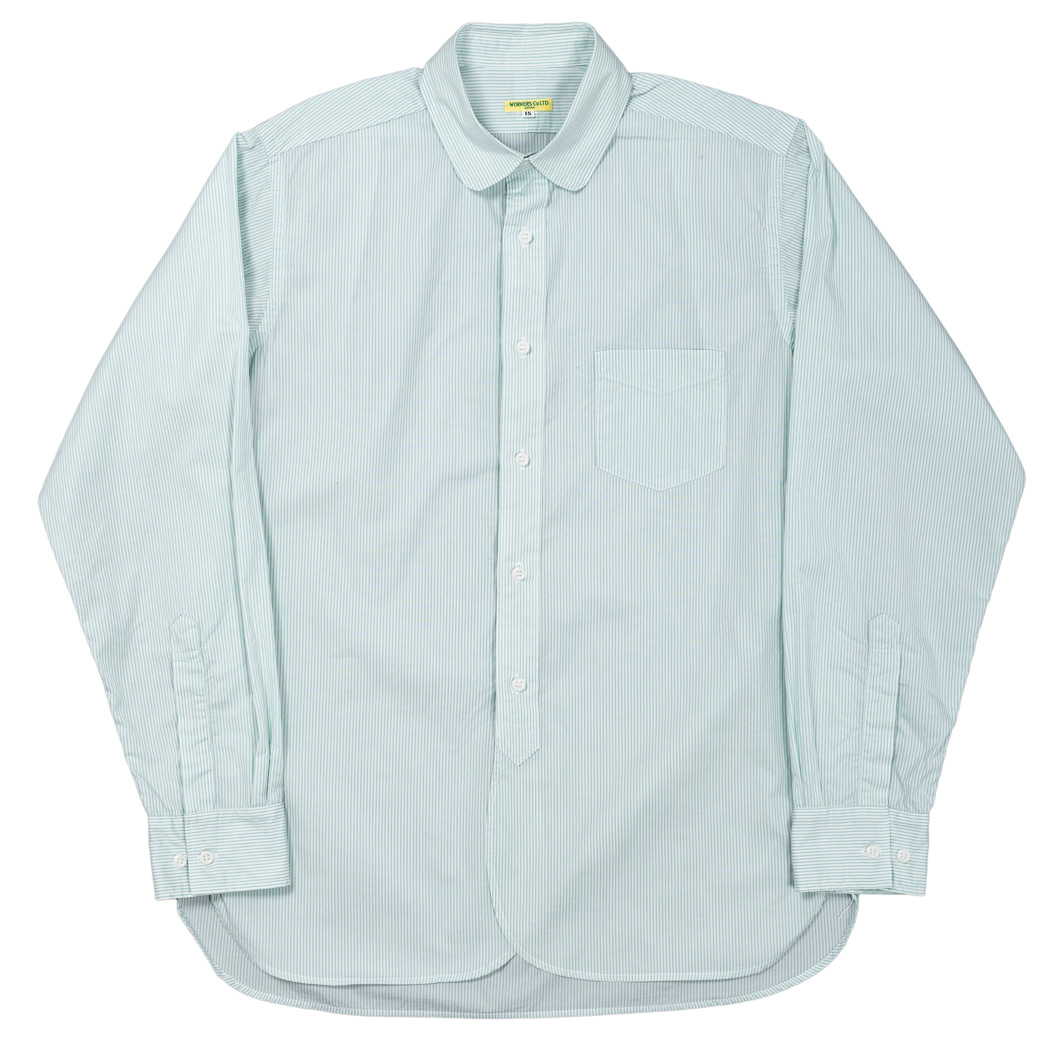 | Round Collar Shirt, Green Stripe Poplin, ¥13000 |