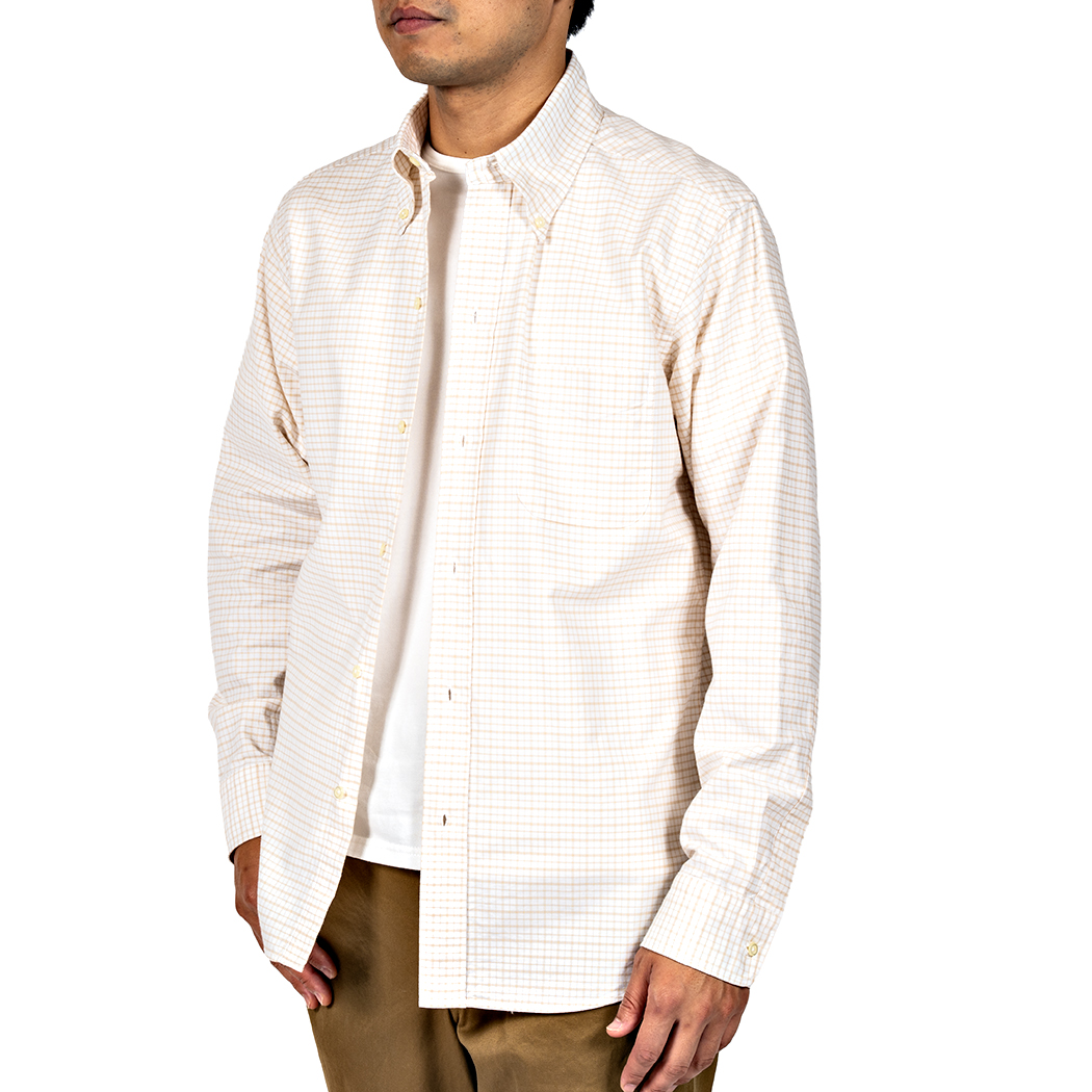 それに対し、Modified BDはもう少し丈が短い、袖も細い、袖口ボタン位置もごく普通の位置。タックインしても、前をあけてアウター的にも着られるサイズ感を目指しています。 |