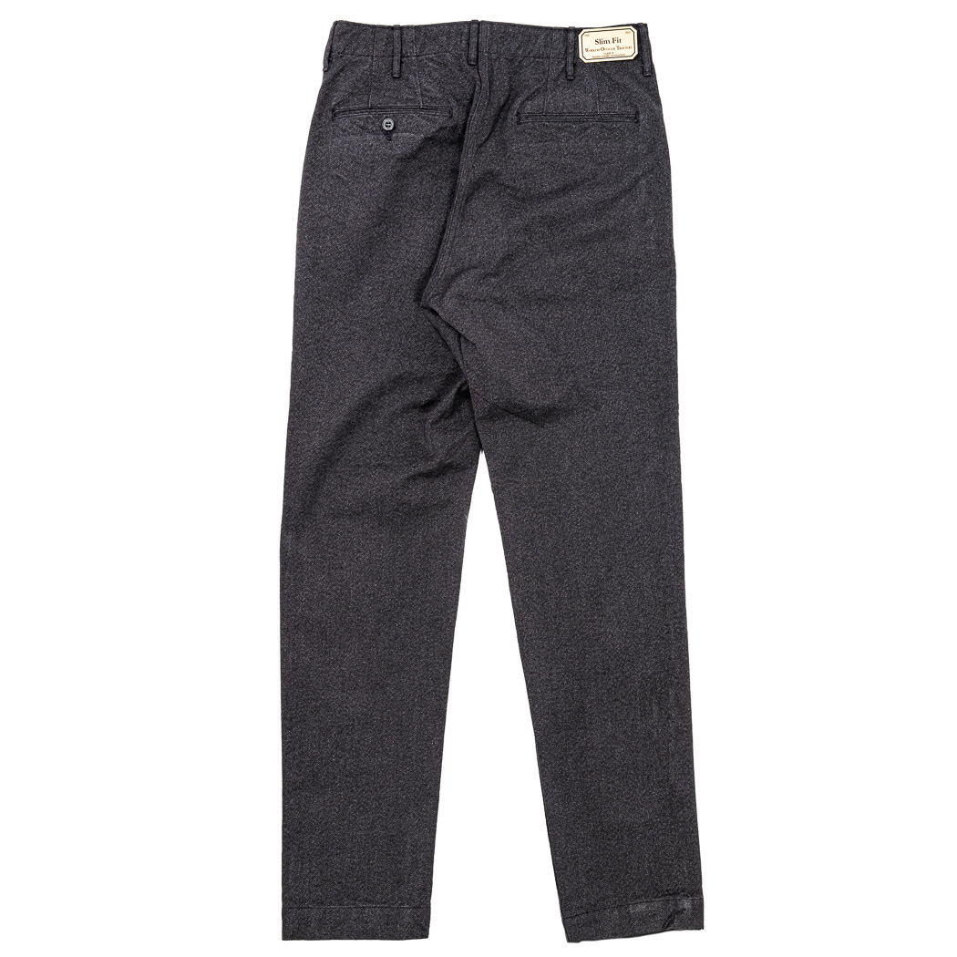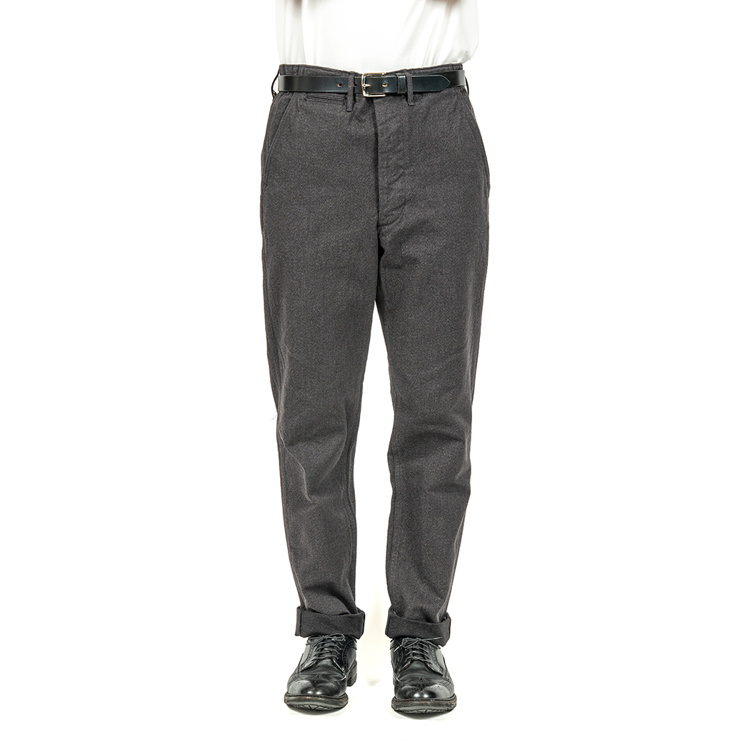 定番、と言いつつ毎シーズン微妙にシルエット、ラインナップ、仕様の変わるOfficer Trousers。いわゆる「チノパン型」。