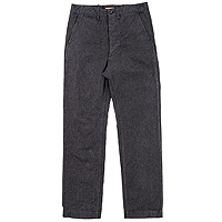 ・ オフィサートラウザーズ、裾幅18センチのスリムと、21センチのレギュラー。仕様をいつもと変えつつ、別注のインディゴヘリンボン・WKS Covertも。Lounge Jacketとセットアップ。