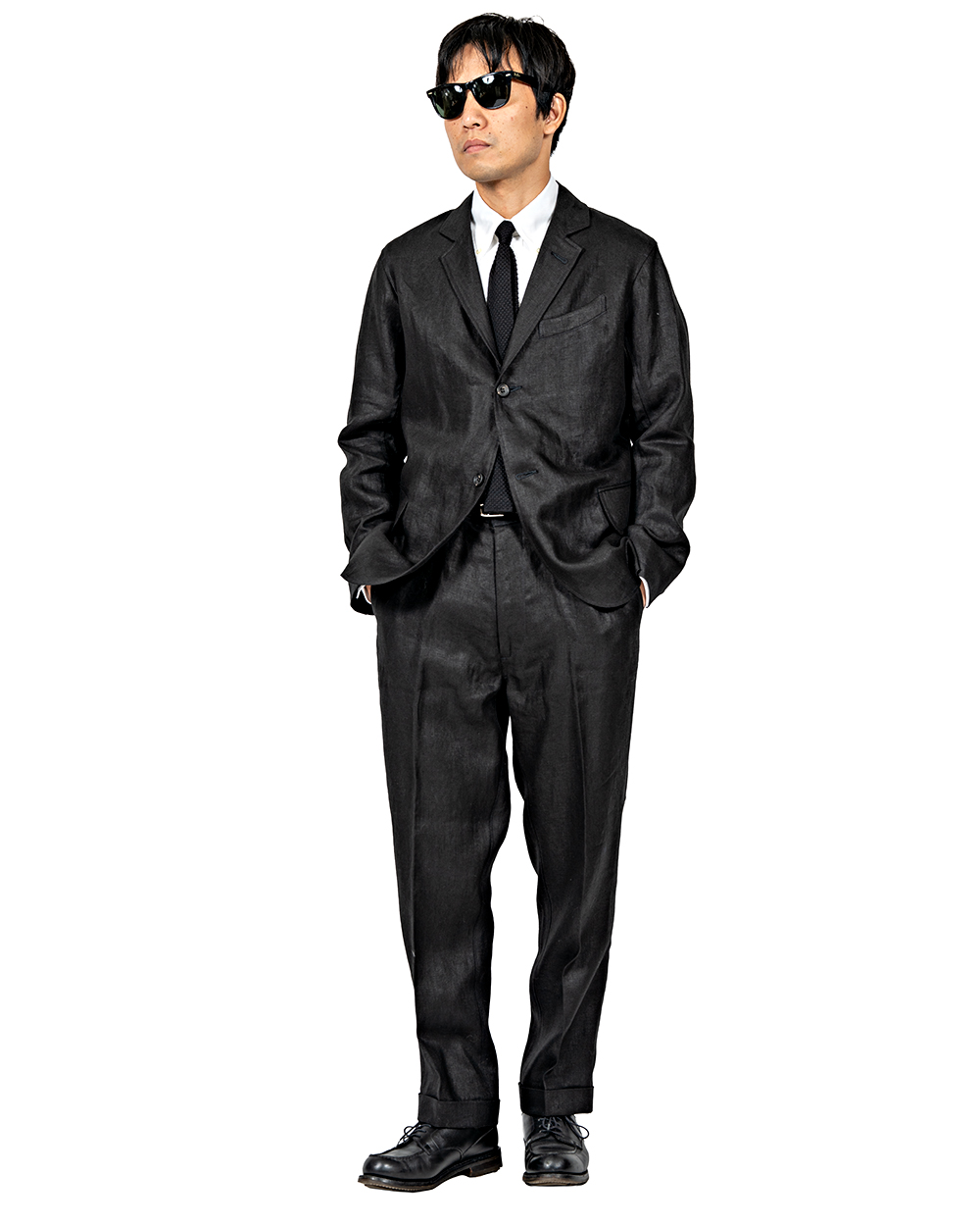素材、逆に、「シワを楽しもう」がフレンチリネン。リネンはシワが出てなんぼですが、そのシワが汚く感じない。ジーンズのヒゲやハチノスが「良いな」と感じるのと同じ。着こんで、自分の体に沿った肘のシワが美しい。