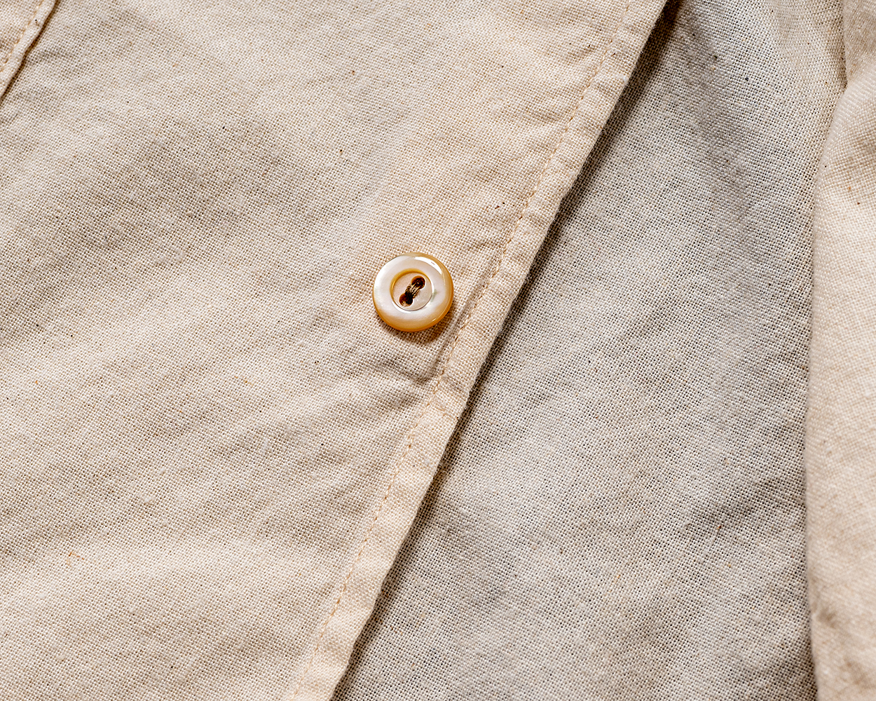 茶蝶貝の独特な色身。これが、インディゴ、ブラック、生成り、どれにも違った対比になって綺麗。