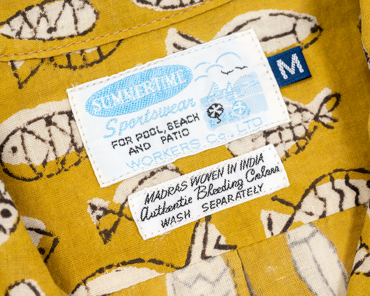 シアーズ・ピルグリムの古着 から作ったネーム。もう10年以上前ですが、出来上がった時はうれしかった。いまだに、パテオの下で夏休みなんかしたこと無いですが、買っていただくお客様にはぜひ、夏のバカンスでお使いください。