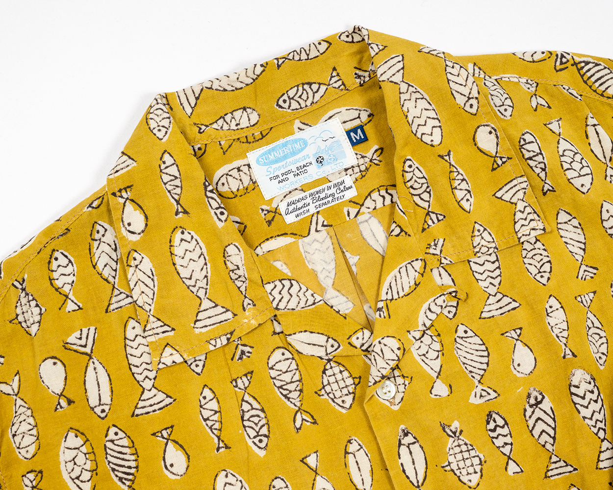 Open Collar Shirt, Ecru Linen Open Collar Shirt, Black Linen Open Collar Shirt, Orange Madras Open Collar Shirt, Fish Block Print