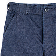 そんなことを考えながら、また別に作ったファティーグパンツ。そういえば、ファティーグも6 オンスぐらいのポプリンだな・・・これのサイドポケットを無くして、普通の「ズボン」に変える。
